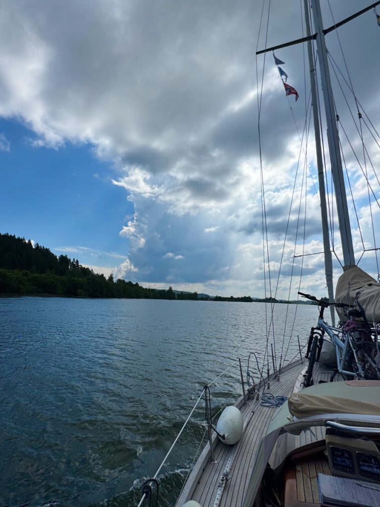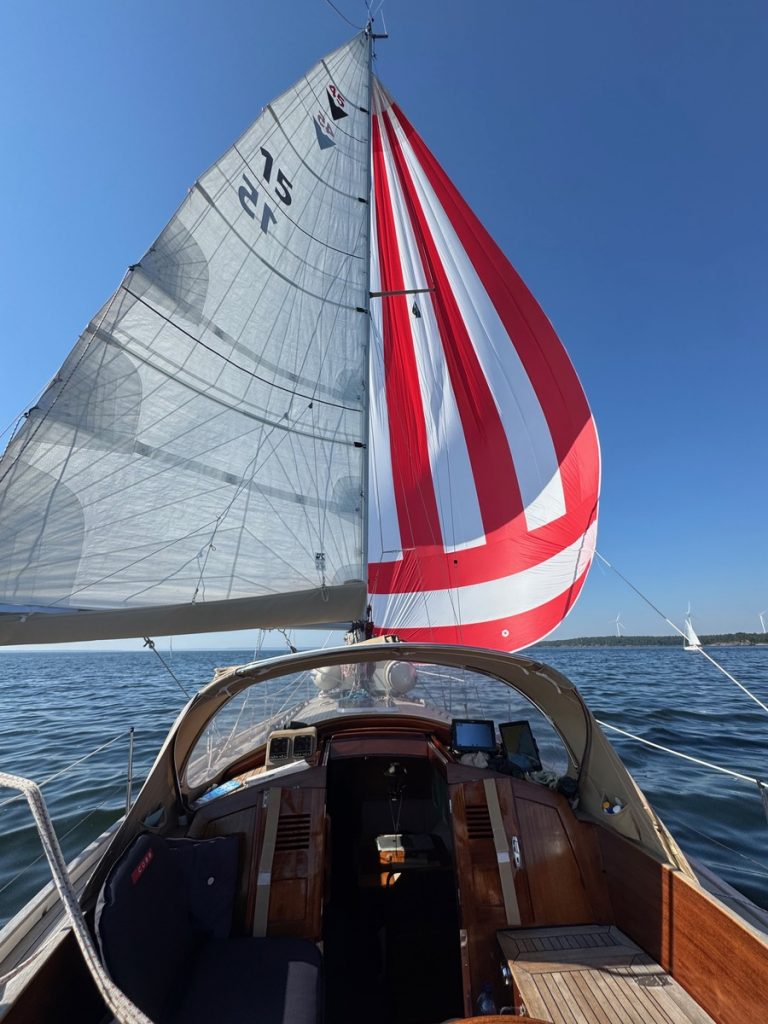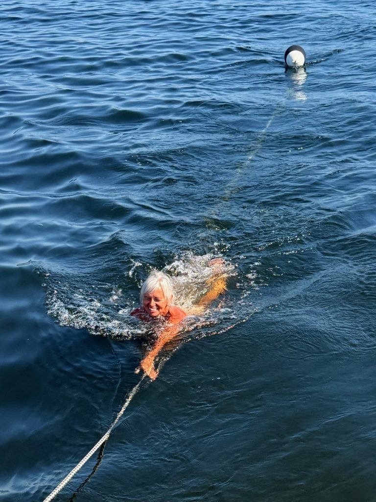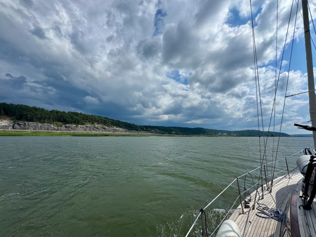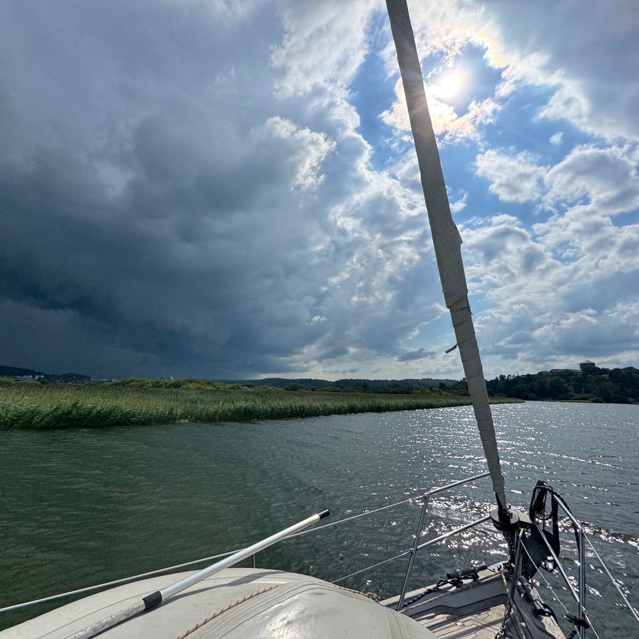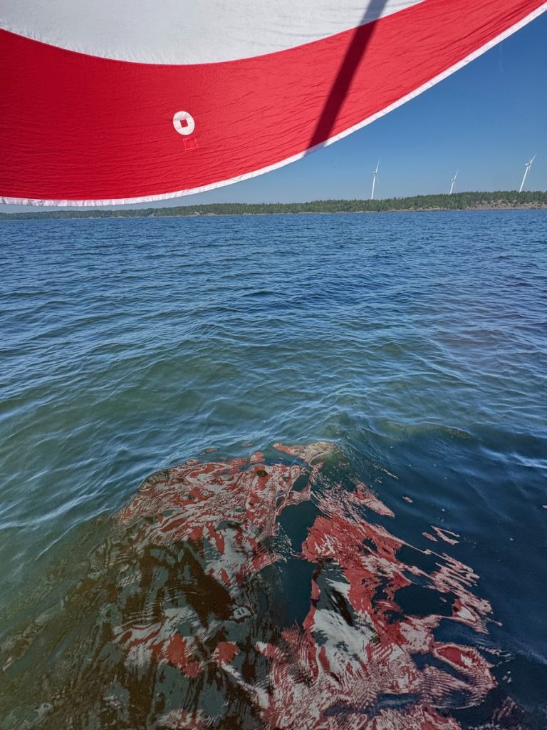 Der Vänern verwöhnt uns auch in den letzten Tagen mit bestem Wetter. Unter Blister segeln wir gemächlich Richtung Vänersborg. Mehrmals lassen wir uns an der langen Leine hinter dem Boot durchs Wasser ziehen – die perfekte Erfrischung und ein leiser Protest gegen den Abschied vom See. Wirklich loslassen wollen wir noch nicht.