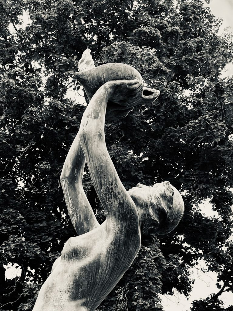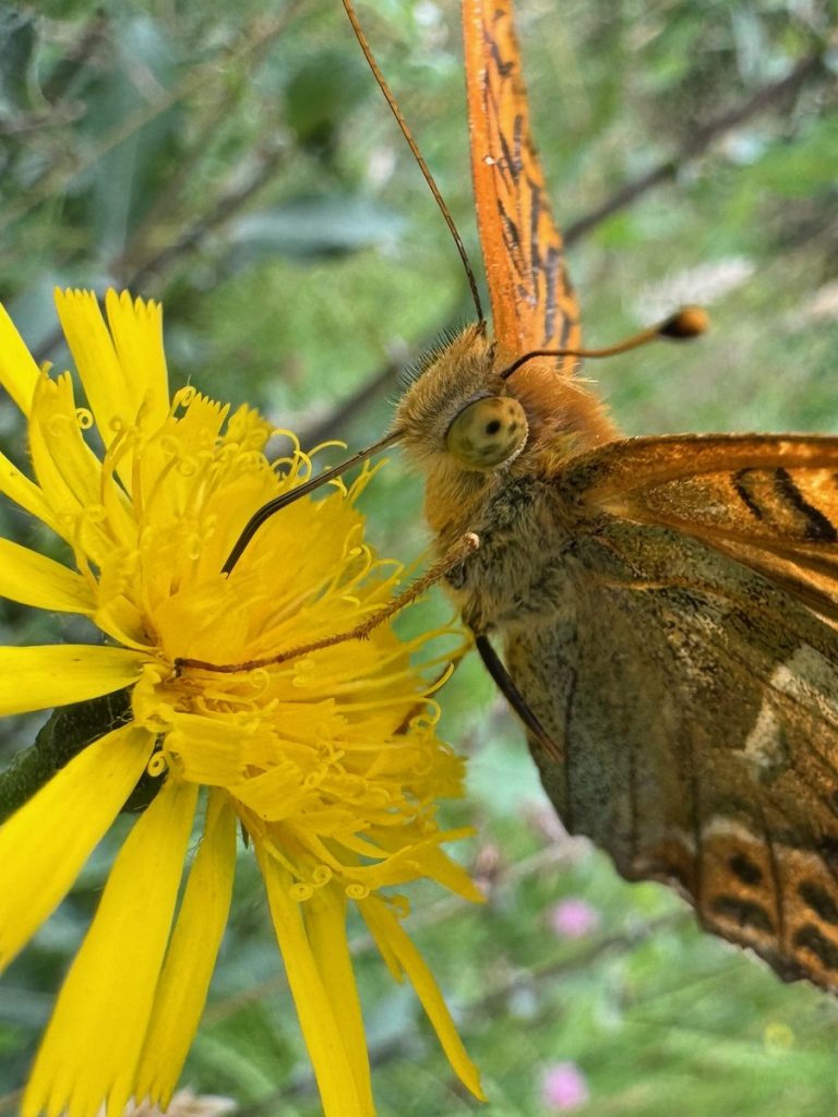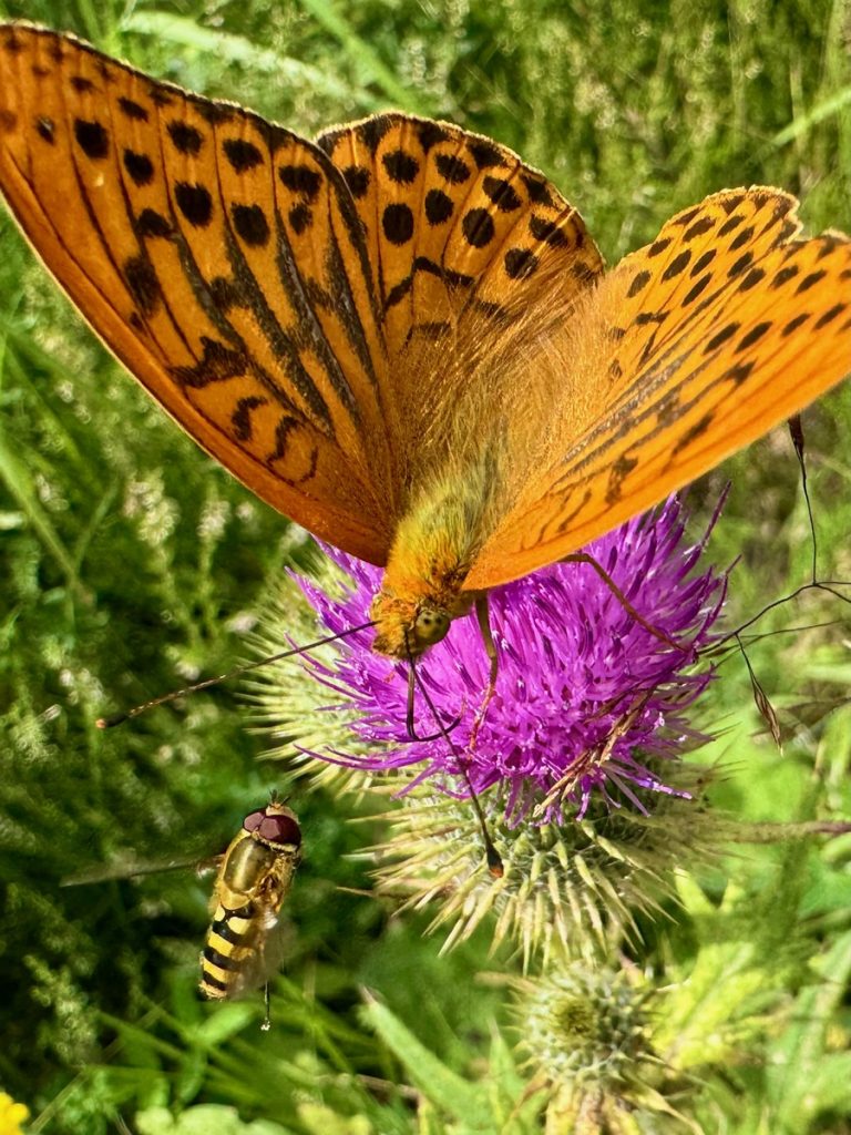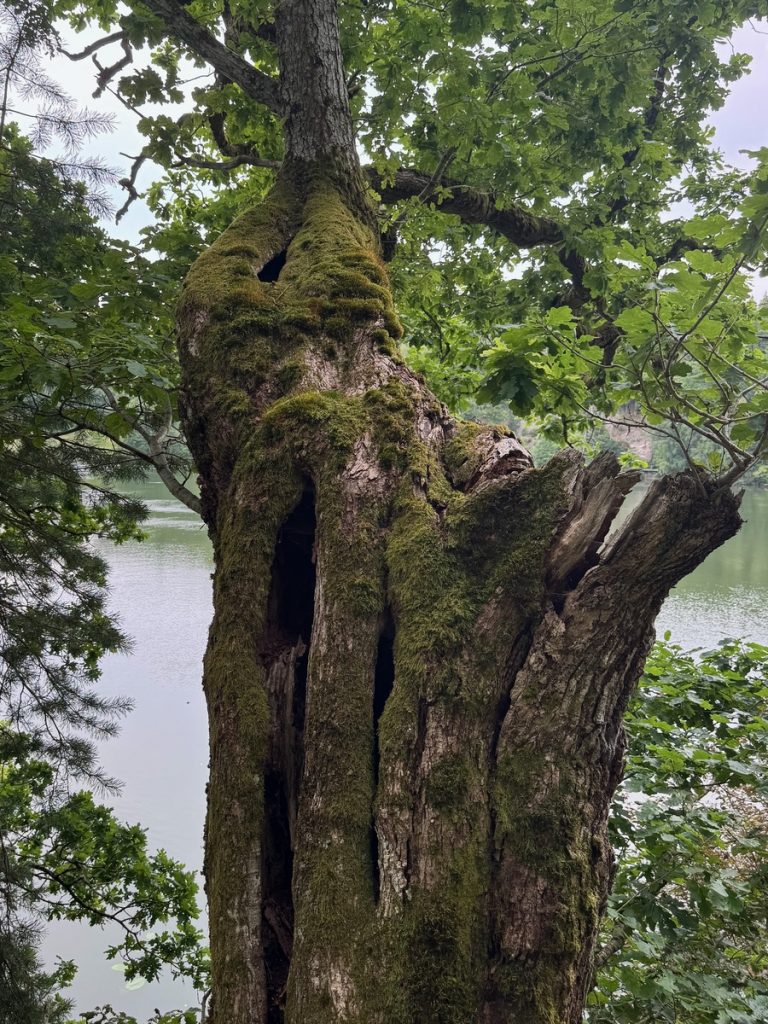 Auf ihre Frage, wie die Oberflächenbeschaffenheit der Fahrradwege sei, bekommt Barbara die Information, dass sie überwiegend gut mit einem Tourenrad zu befahren sind. Von einer Benutzung mit dem Rennrad wird abgeraten. Am besten sei die Straße, die auch für den Autoverkehr freigegeben ist. Das erste Ziel ist eine Waldlichtung mit der ältesten Eiche des Gebietes. Dahin führt die „Autostraße“. Anfangs asphaltiert, dann als Schotterpiste. Beim Blick in die Landschaft ist Barbara kurz unaufmerksam, der Vorderreifen gerät im losen Schotter am Fahrbahnrand ins Rutschen und Barbara findet sich der Länge nach auf der Straße wieder. Der Schreck ist groß: ein paar Prellungen, Schürfwunden und in die Höhe schießendes Adrenalin. Zum Glück kommt just in diesem Moment eine nette Schwedin im Auto vorbei, hält an und unterstützt bei der ersten Wundversorgung mit ihrer Wasserflasche. Bei der Reinigung einer kleinen Gesichtswunde, legt Barbara sich kurz schlafen, was dazu führt, dass die nette Schwedin sie nicht allein lassen möchte. Gemeinsam werden ein paar Momente im Schatten eines Baumes verbracht und ein freundliches Gespräch geführt an dessen Ende Barbara mit dem Auto zu ihrem ersten Ziel gefahren wird. Dort angekommen, stärkt sie sich mit Wasser Brot und „Baumenergie“, um dann den Rückweg zum Fahrrad zu Fuß anzutreten. Die Bewegung tut gut und so beschließt sie, die geplante Runde wieder aufzunehmen. Der weitere Weg führt durch Feuchtgebiete und moosige Wälder, vorbei an in der Sonne tanzenden Schmetterlingen, einem neu angelegten See mit skurrilen Baumskeletten und zu einem Aussichtspunkt über die Ebene. Leider versagt irgendwann der Akku von Handy und Powerbank, sodass der Rückweg auf bekannter Strecke erfolgen muss.
