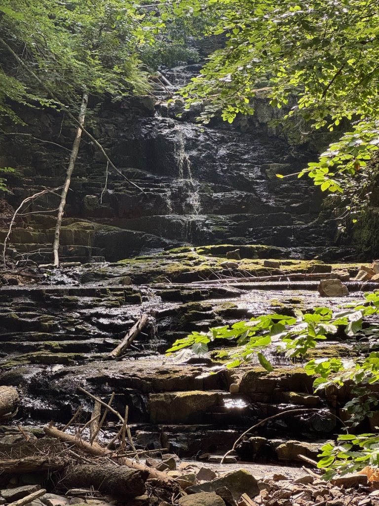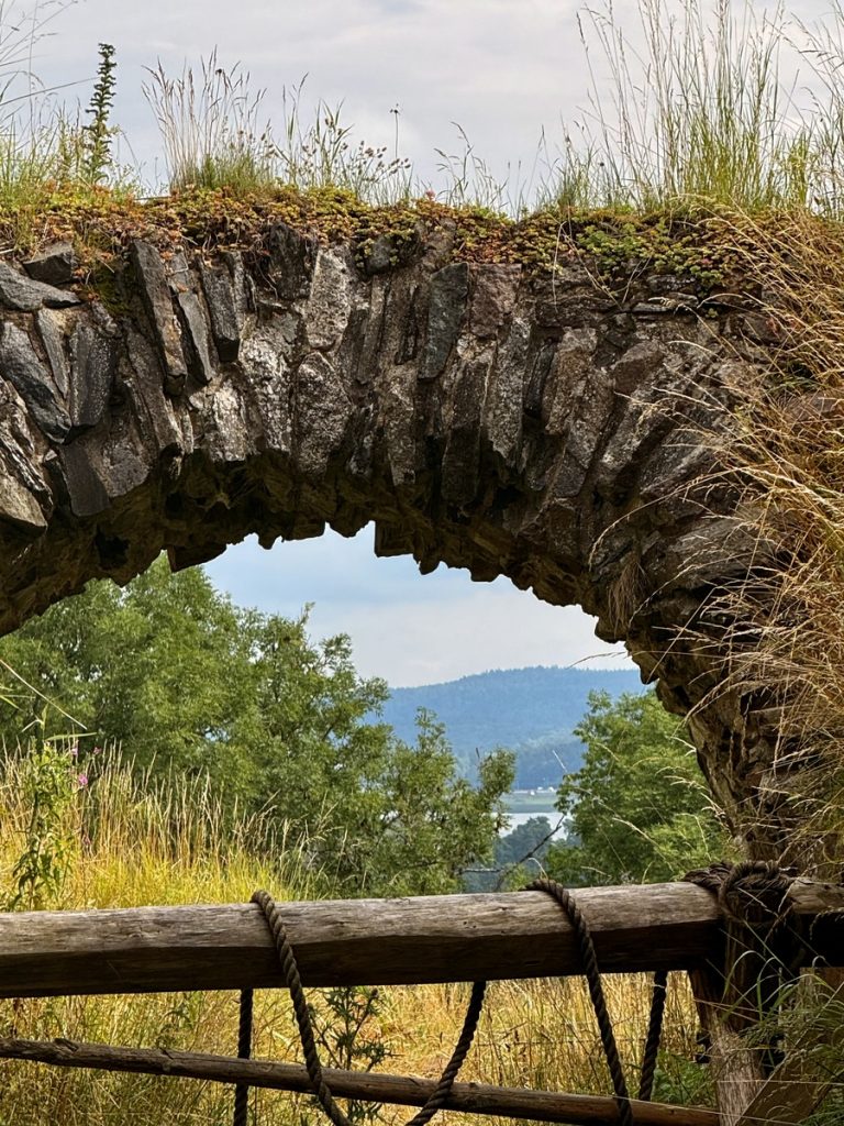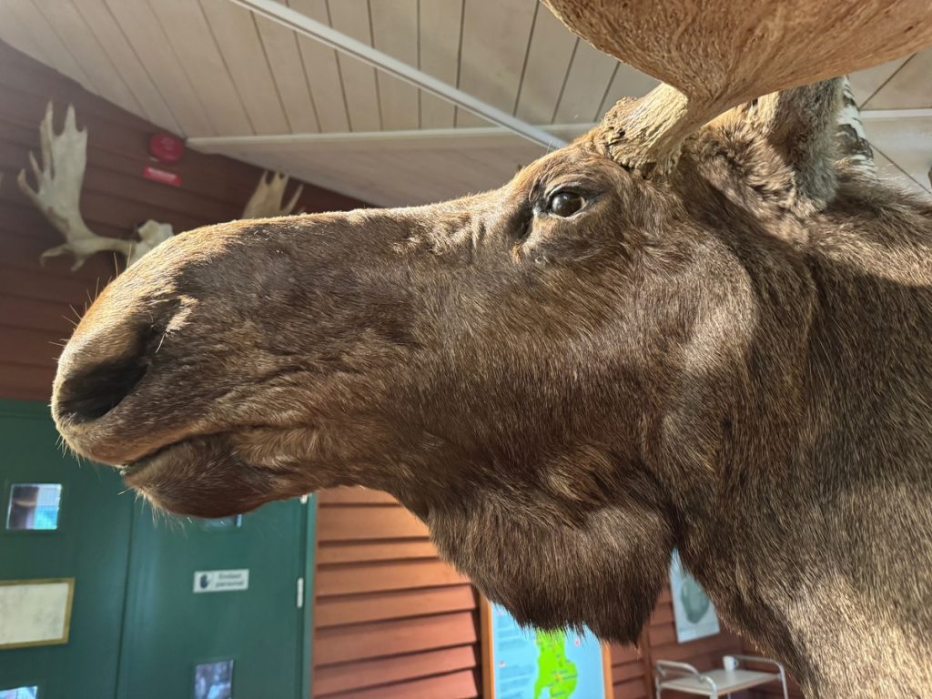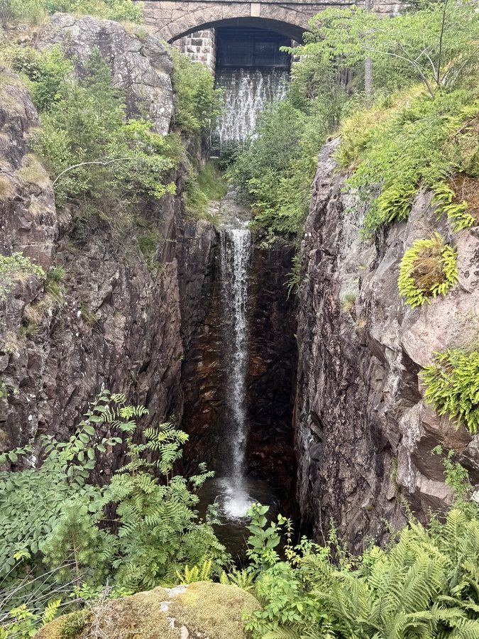 Die Radtour führt Barbara anfangs entlang des Trollhättan Kanals, biegt dann (leider) ab, um Industrie- und Gewerbegebiete sowie das Flughafengelände zu passieren. Nach 15 Kilometern ist der Fuß des Tafelberges „Hunneberg“ erreicht. Der hier als sehenswert angekündigte Wasserfall ist leider saisonbedingt recht übersichtlich. Die Steigung ist kurz aber knackig: wer sein Fahrrad liebt, der schiebt… Im Besucherzentrum bekommt man Information zum Naturschutzgebiet und Kartenmaterial. Außerdem wird man direkt von einem Elch begrüßt – leider ausgestopft. Die Größe ist dennoch beeindruckend.