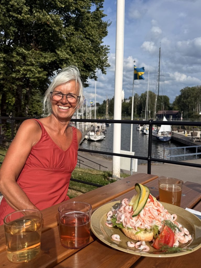 Unser Liegeplatz liegt nicht nur vor einem Eisladen, sondern auch direkt unterhalb des „Slusscafé“, in dem es die größten Krabbenbrötchen geben soll. Das müssen wir natürlich einmal testen, bevor wir uns im Anschluss den restlichen Ort Trollhättan mit den Rad anschauen.