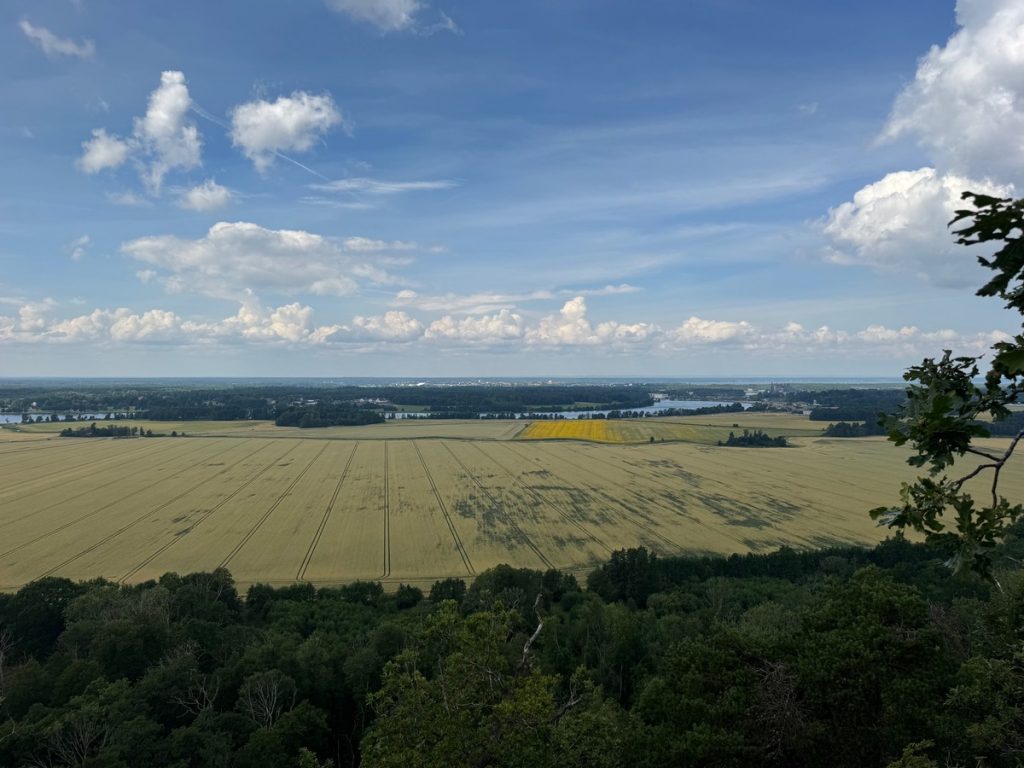 Sowohl in der Nacht, als auch am frühen Morgen werden große Schiffe der Berufsschifffahrt geschleust. An unserem aktuellen Liegeplatz am Beginn der Schleusentreppe von 1844 sind wir hautnah dabei und nutzen die Gelegenheit natürlich auch, um uns das Schauspiel anzusehen. Barbara möchte aber auch noch einen Fahrradausflug zu den Tafelbergen bei Vänersborg unternehmen. Diese bilden ein Naturschutzgebiet an der Südspitze des Vänern, in dem eine ansehnliche Elchpopulation lebt und besondere geologische Formationen sichtbar werden. Werner steht bei der Hitze weniger der Sinn nach Radtour und so gehen wir heute mal getrennte Wege.