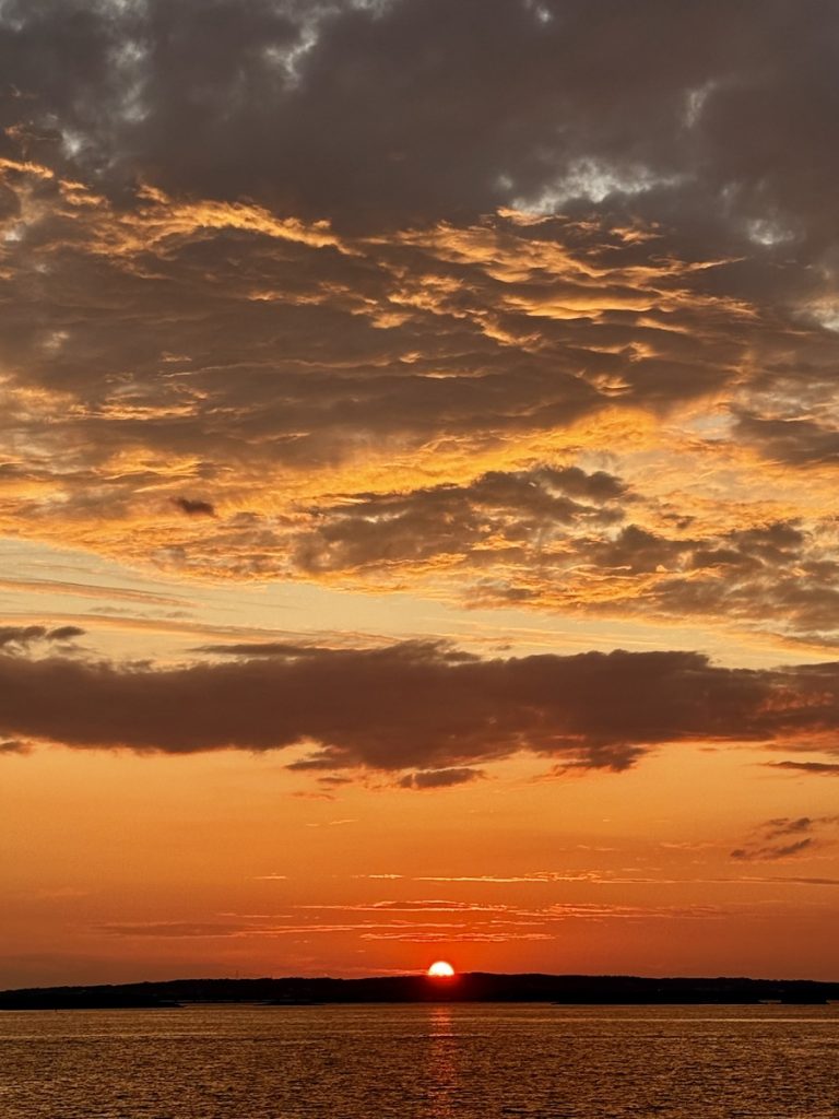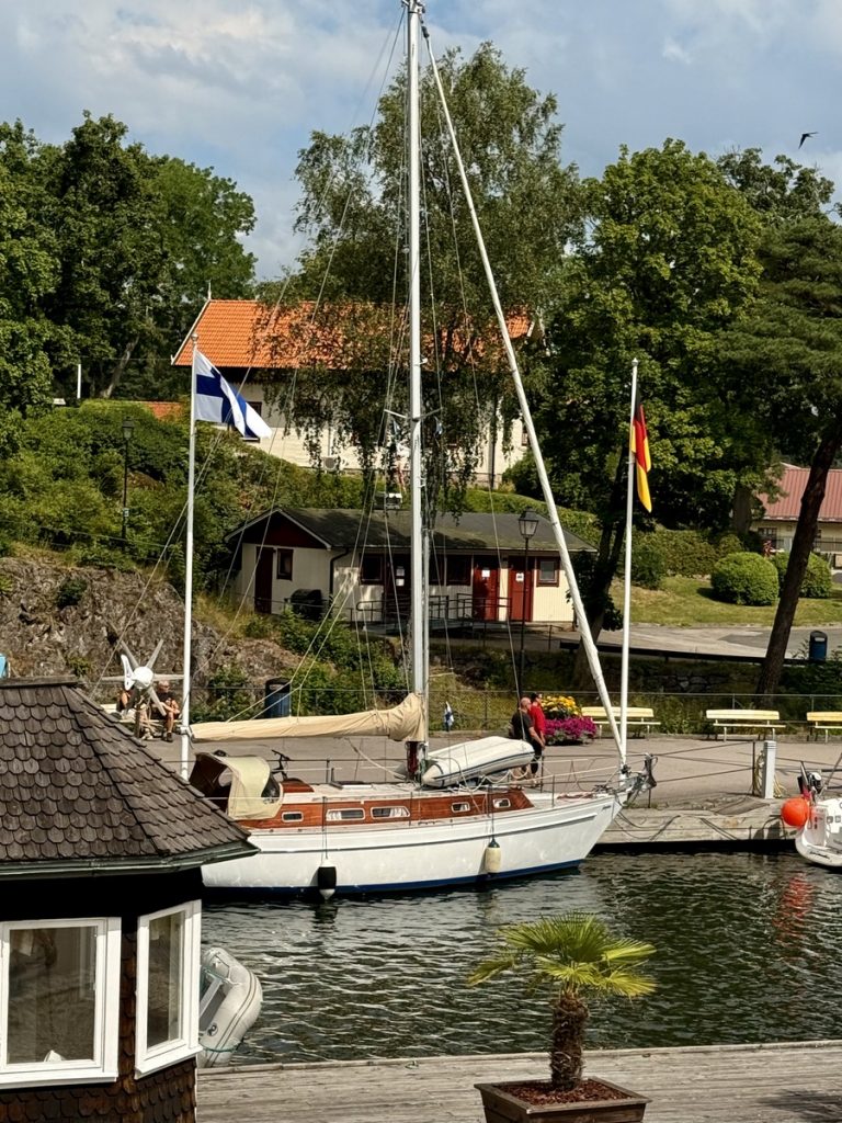 Den ganzen Tag hatten wir hochsommerliches Wetter, abends ändert sich das. Es bewölkt sich, Wind kommt auf und nimmt stetig zu – im Rigg beginnt es zu pfeifen und zu klappern. Beim Abendessen beginnt Barbara zu frösteln und greift nach dem langärmeligen T-Shirt, was Werner noch mit „Warmduscherin“ kommentiert. Wenig später fragt er nach einem Pulli und kurz darauf werden die Wolldecken ins Cockpit gereicht. Auch für die nächsten Tage ist eher frisches Wetter angekündigt und vor allem reichlich Wind. Wir noch etwas hierbleiben – es gibt noch viel in und um Göteborg zu entdecken, langweilig wird uns sicher nicht!