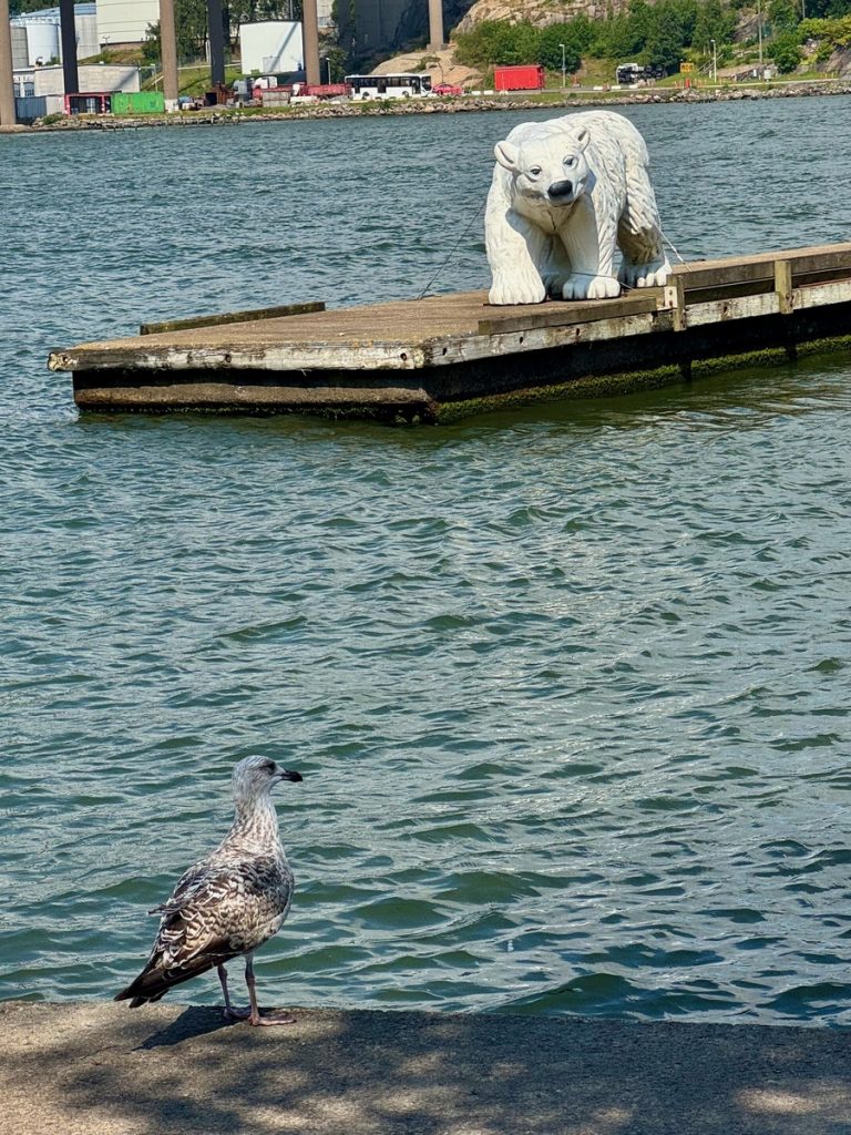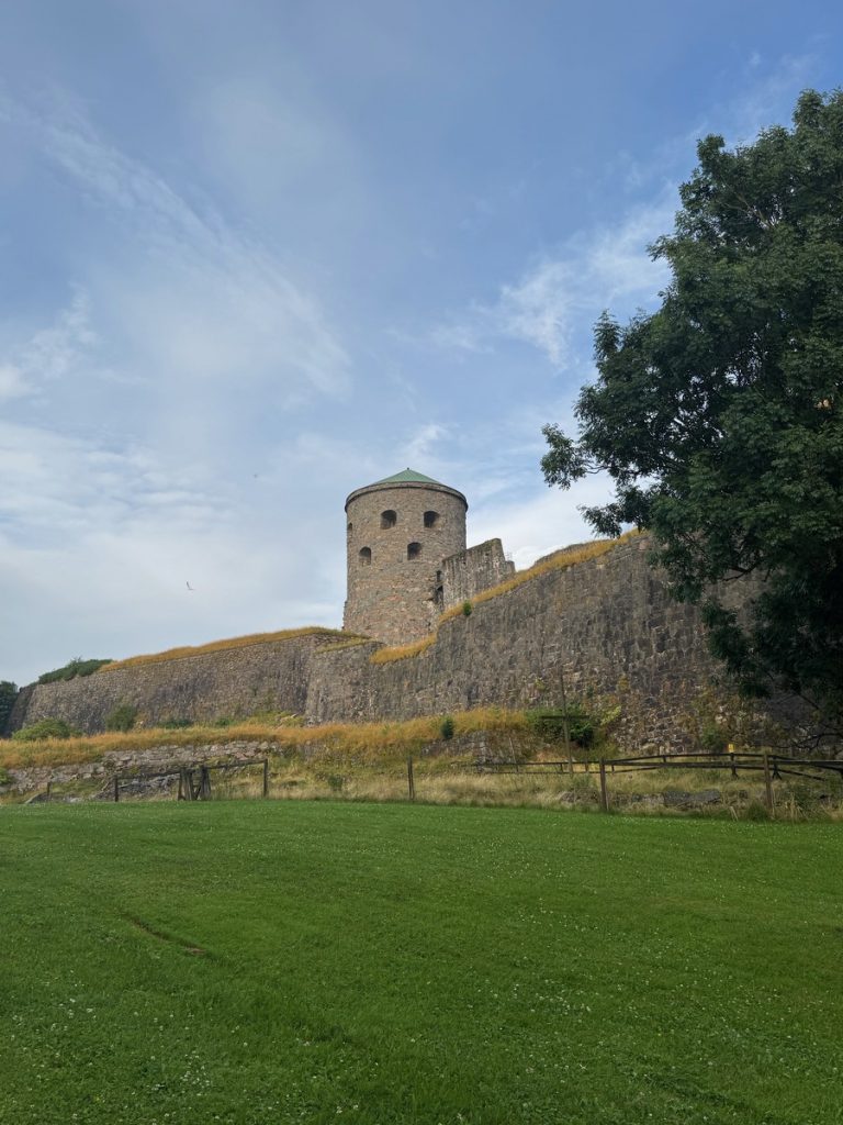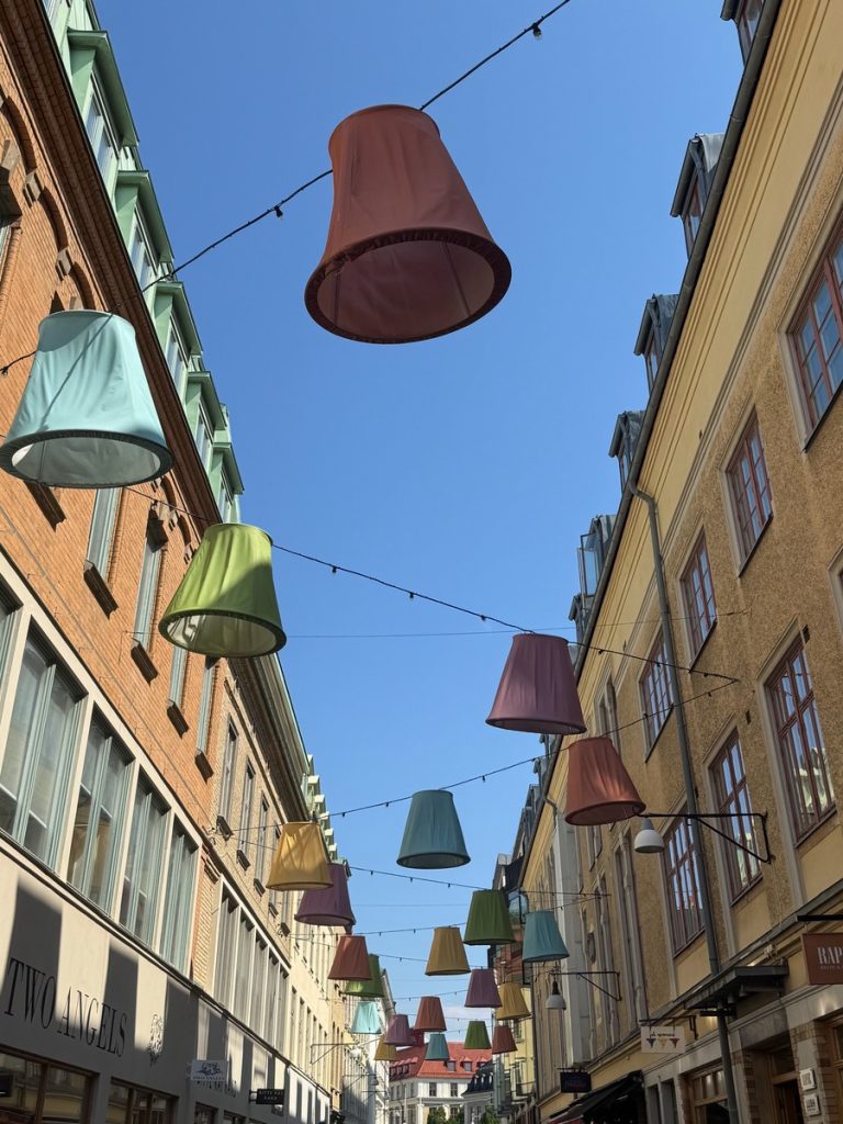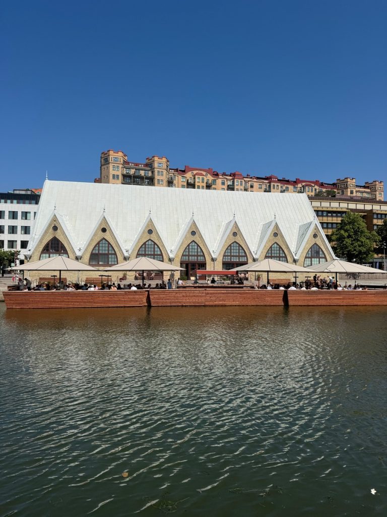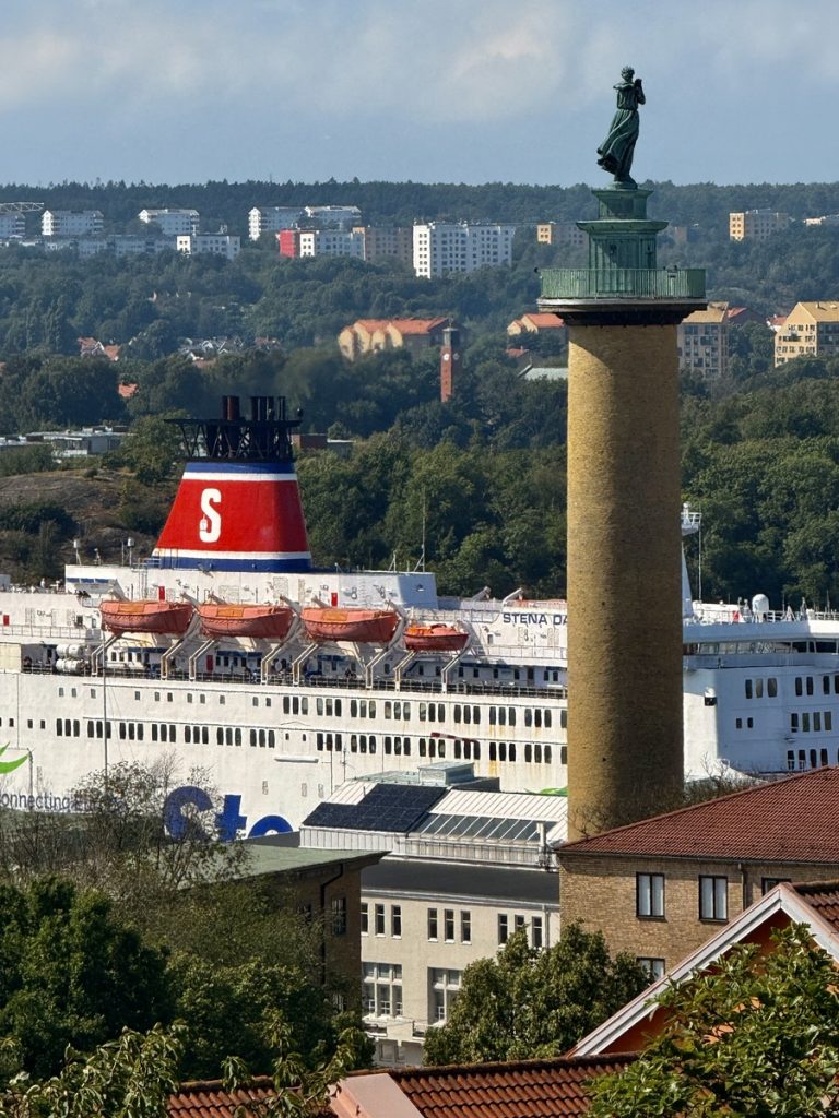 Schärenausflug oder Stadtgang, diese Frage diskutieren wir beim Morgenkaffee. Die Entscheidung fällt für Stadtgang. Mit den Rädern machen wir uns auf den Weg ins Zentrum Göteborgs. Der Radweg führt über Nebenstraßen und auf reinen Radwegen, anfangs durch Vorstadtsiedlungen mit hübschen Einfamilienhäusern, später entlang des Ufers des Götaälvs. Unser erstes Ziel ist das Stadtviertel „Haga“ mit seinen hübschen Läden und Cafés. Als Erstes kehren wir ein, um zu frühstücken. Dann geht es zu Fuß hoch auf den Risåsberget zur Festung „Skansen Kronan“, der im 17. Jahrhindert zur Verteidigung der Stadt gegen dänische Angriffe aus dem Süden gebaut wurde und mit 23 Kanonen bestückt war. Aktuell ist er teilweise eingerüstet und die Hauptzugangstreppe wegen Steinschlag gesperrt – der sich bietende Ausblick ist den Aufstieg allemal wert! Unser nächstes Ziel ist die „Feskekörka“, ein Fischmarkt mit Restaurant, die wegen ihrer Architektur im Volksmund als „Fischkirche“ bezeichnet wird. Optisch und kulinarisch macht sie etwas her, ist allerdings heute mehr Restaurant, als Fischmarkthalle. Ein Bataillon geleerter Weißweinflaschen über dem Tresen zeigt, wie gern hier gegessen und getrunken wird. Wir ziehen weiter zur „Saluhallen“, der eigentlichen Markthalle von Göteborg. Im Unterschied zu spanischen Markthallen, findet man hier weniger Ost, Gemüse und Fisch, dafür mehr Käse- und Fleischwaren. Aber auch mediterrane Delikatessen findet man hier. Aber genau wie in Spanien geht die Entwicklung hier weg vom Lebensmittelhandel und hin zur Gastronomie. Wir schlendern etwas durch die umliegenden Straßen der Innenstadt und lassen das Flair auf uns wirken. Leider wird aktuell in Göteborg sehr viel gebaut, viele Straßen sind nur schwer oder gar nicht passierbar. Eine Googlesuche bringt Klarheit: Es handelt sich um ein im Bau befindliches Eisenbahnprojekt mit einer Länge von 8 Kilometern für Regional- und Nahverkehrszüge in Tunneln unter der Stadt. Außerdem scheinen auch Fernwärmeleitungen erneuert oder ergänzt zu werden, denn einige Baustellen sehen aus wie in Flensburg…