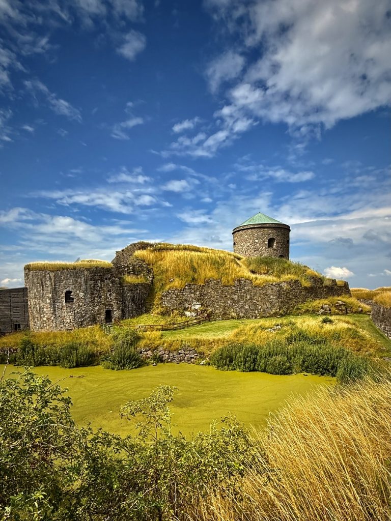 Jetzt liegen nochmals 18 Seemeilen unter Maschine vor uns, bis wir kurz vor einem aufziehenden Gewitter die kleine Steganlage unterhalb der Festung Bohus erreichen. Ohne nass zu werden, bauen wir fix die Kuchenbude auf und als wir es uns gerade darin gemütlich machen, bricht das Gewitter los. Ein Blitz muss direkt in der Nähe eingeschlagen sein. Zeitgleich mit einem ohrenbetäubenden Knall sieht Barbara ein blaues Ringlicht. Die Regentropfen trommeln auf die Kuchenbude, sodass man kaum das eigene Wort verstehen kann.