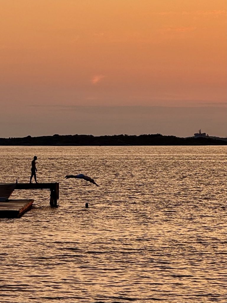 Gut informiert treten wir den Rückweg an, springen zur Abkühlung nochmals in Wasser und genießen ein leckeres Abendessen im Cockpit (Wraps). Anschließend feiern wir dann mal wieder Abschied. Diesmal geht es an Bord der Penelope. Da es dort Probleme mit der Batterie gibt, werden sie in Vänersborg bleiben, bis Ersatz gefunden ist. Gemeinsam leeren wir Wein- und Bierflaschen und spinnen Seglergarn – Danke an Anja und Thomas für einen wunderschönen Abend!