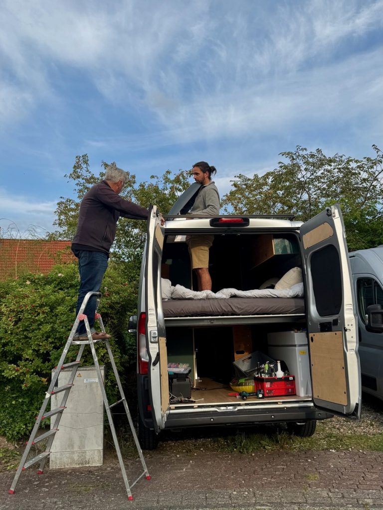 Währenddessen kümmert Werner sich um die Wassertanks. Dazu schraubt er die Revisionsdeckel ab und sieht sich dem nächsten Problem gegenüber: obwohl wir das Wasser komplett abgelassen hatten, steht ein Rest im Tank und auf der Oberfläche hat sich eine grau-schwarze Schicht gebildet. Auch hier muss also alles raus. Mit Schwamm Schlauch und laufender Pumpe mit geöffneten Wasserhähnen werden die Tanks gereinigt. Barbara testet das hier angebotene Frischwasser auf seine Qualität. Es ist erstaunlich gut und liegt in allen Parametern deutlich innerhalb des Normbereiches. Wir nutzen das Wasser aus den Tanks zwar nicht zum Trinken, aber schon zum Kochen. Daher ist eine gute Qualität uns wichtig.