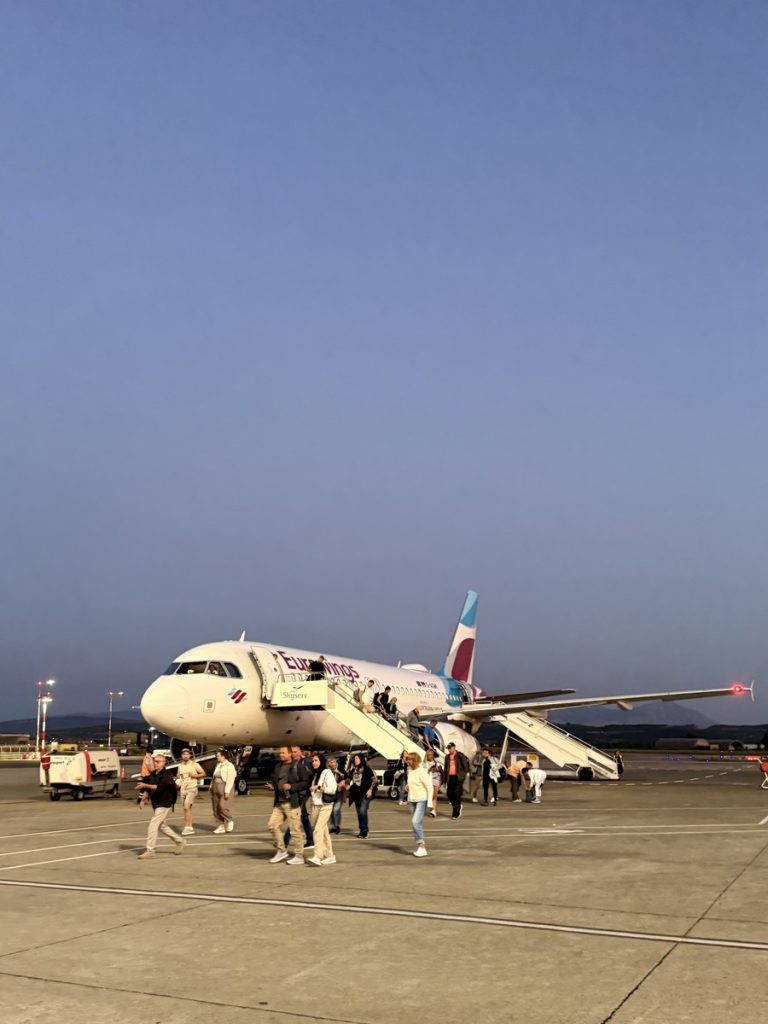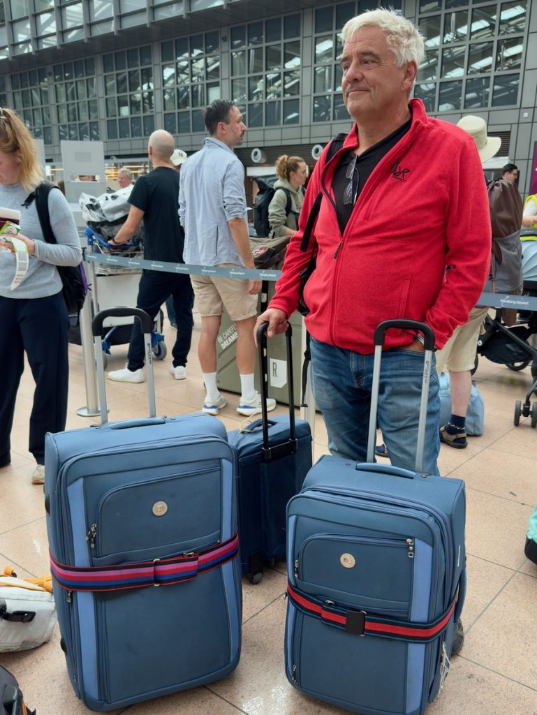 Mittags geht es von Hamburg mit Eurowings via Stuttgart völlig problemlos in den Süden. Tochter Anna bringt uns zum Flughafen. Am Sicherheitscheck werden wir beide komplett zerlegt. Mit den Powerbanks, einer Stricklampe, einem Blutdruckmessgerät und einer elektrischen Zahnbürste waren wir anscheinend höchst suspekt. Werner wurde von der Bundespolizei umstellt, aber am Ende war alles gut!