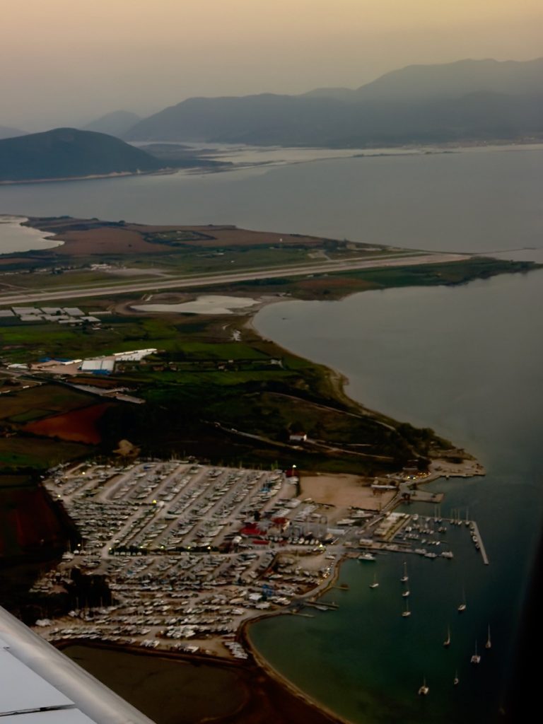 Durch die Zeitverschiebung landen wir um planmäßig um 19:45 Uhr nach Sonnenuntergang bei sommerlichen 26 Grad. Der Flughafen ist klein und sehr übersichtlich. Genau zwei Laufbänder stehen für die Ausgabe der Koffer zur Verfügung! Mehr als zwei Maschinen landen hier also nicht kurz hintereinander! Wir hatten bereits im Vorfeld ein Auto für die Werftwoche gemietet und zumindest für die erste Nacht ein kleines Apartment in Preveza. Die Werft ist vom Flughafen einen Kilometer entfernt, die Unterkunft drei Kilometer. Im Dunkeln am Boot anzukommen, eventuell ohne Zugang zu Strom und Wasser und ohne Leiter, um an Bord zu steigen, war uns zu riskant. Wir hatten zwar genau dies alles im Vorhinein bei der Werft erbeten, waren uns aber nicht sicher, ob das auch umgesetzt würde, da wir am Samstag anreisen, an dem auf der Werft nicht gearbeitet wird. Als wir unser Apartment erreichen, werden wir von der freundlichen Eigentümerin begrüßt. Wir stellen unser Gepäck ab und spazieren zur Küste auf der Suche nach einer netten Taverne und werden schon nach wenigen 100 Metern fündig. Wir haben Hunger und bestellen verschiedene „Kleinigkeiten“ – zu viel, wie sich herausstellt, als die stattlichen Portionen auf den Tisch kommen. Unser Apartment verfügt über eine Klimaanlage und so kommen wir nach dem Essen in ein angenehm kühles Zimmer, in dem wir wunderbar schlafen.