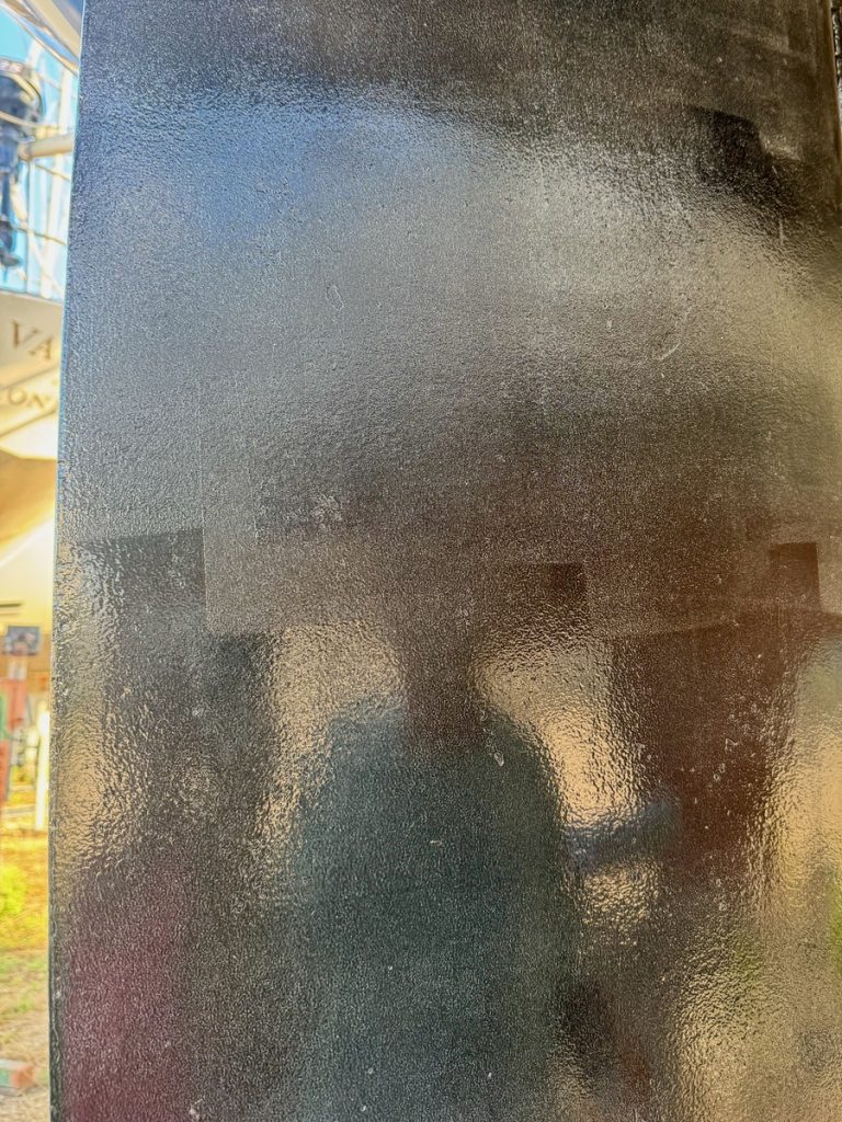Tag drei auf der Werft und Schicht drei für das Unterwasserschiff. Der „Top Coat“ trägt auf dem Deckel die Farbkennzeichnung „Graphite“. Als wir die Deckel öffnen irritiert uns die transparent-weißlich wirkende Flüssigkeit. Wir waren davon ausgegangen, dass auch diese dritte Schicht einen deutlichen deckenden Farbton hinterlässt. Das ist allerdings nicht so. Die Farbe ist transparent und es ist super schwer zu erkennen, wo man bereits gestrichen hat und wo nicht, zumal diese Farbe wieder sehr schnell trocknet. Wir schreiben unseren Händler an und bitten um einen Rückruf. Dieser kommt auch unverzüglich. Es wird uns versichert, dass es alles seine Richtigkeit hätte. Die transparente Endschicht enthält Glitzerpartikel und diese könne man bei Taschenlampenlicht sichtbar machen. Einen Schreckmoment gibt es allerdings, als uns zudem mitgeteilt wird, wir hätten die gesamte Farbe der zweiten Schicht verstreichen müssen. Das ist nun zu spät und wir hoffen nur, dass auch die etwas dünnere Schicht ausreicht, um eine gute Klebeverbindung zu bewirken. Mit einem etwas scheckigen Unterwasserschiff können wir leben.