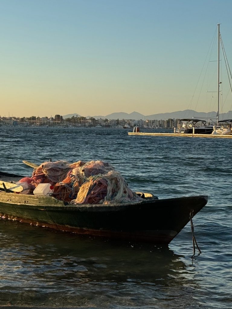 Im Anschluss widmen wir uns anderen Aufgaben wie Maschinencheck, Coverreinigung, Antennenproblemen. Für die Endschicht reicht die Zeit heute nicht, also geht es wieder zurück zur Wohnung, zum Baden, zum Duschen und zum Essen. Diesmal wählen wir eine Taverne an der Promenade, wo man auch wunderbar Leute und Boote gucken kann.