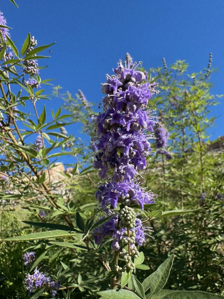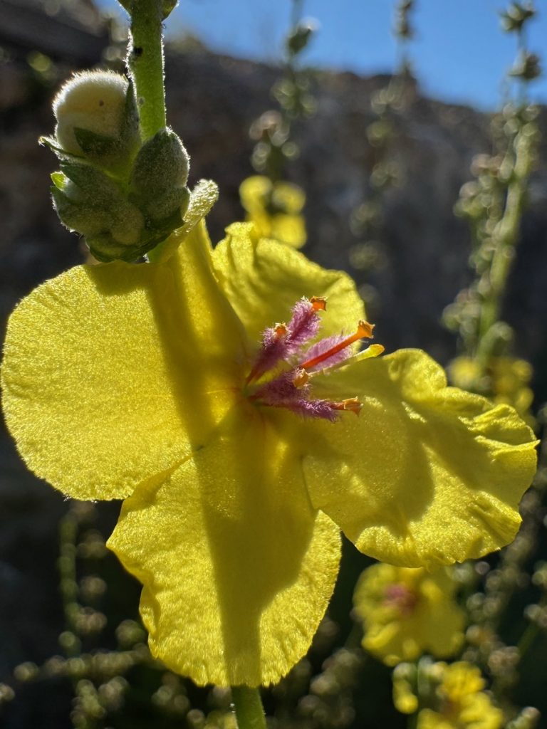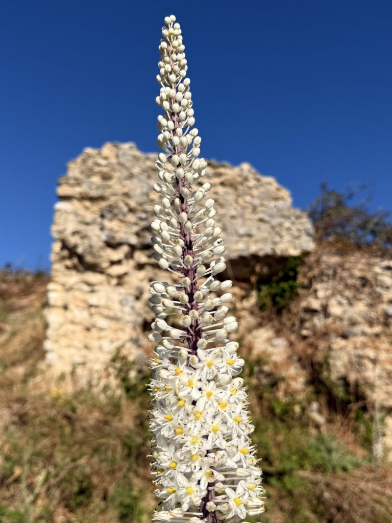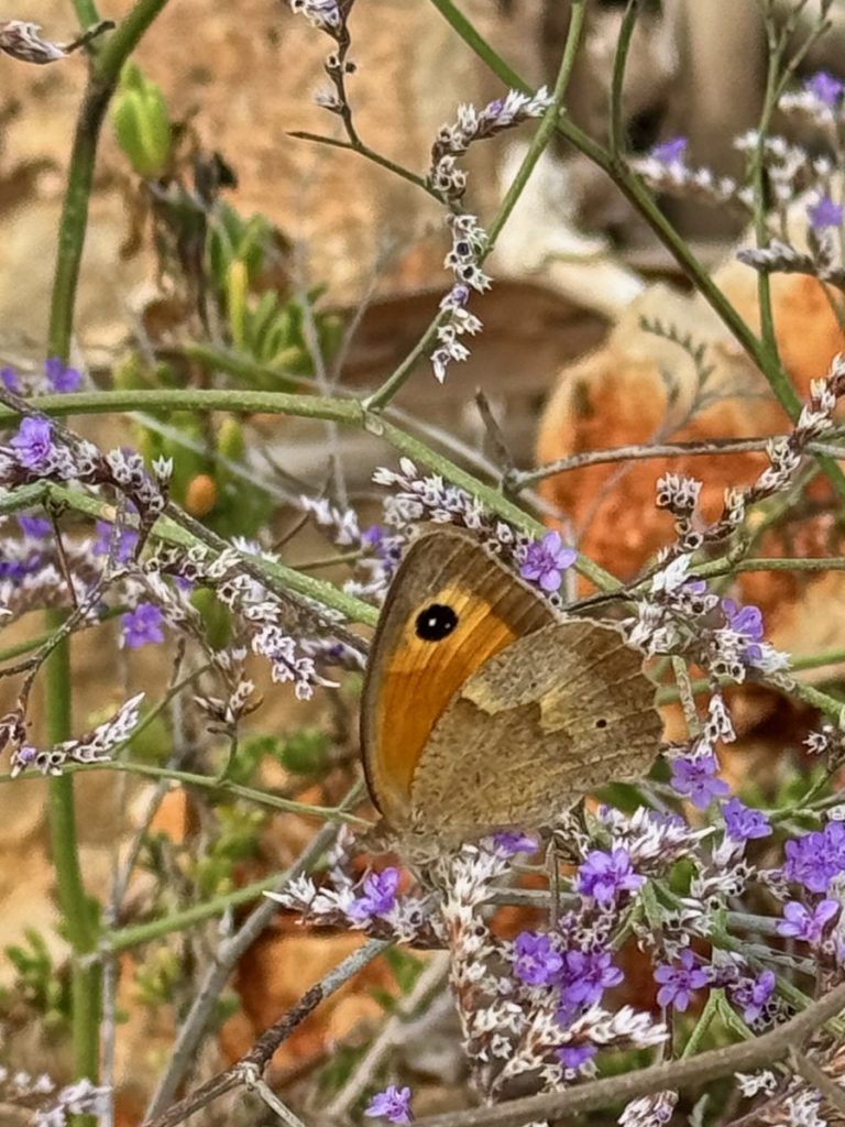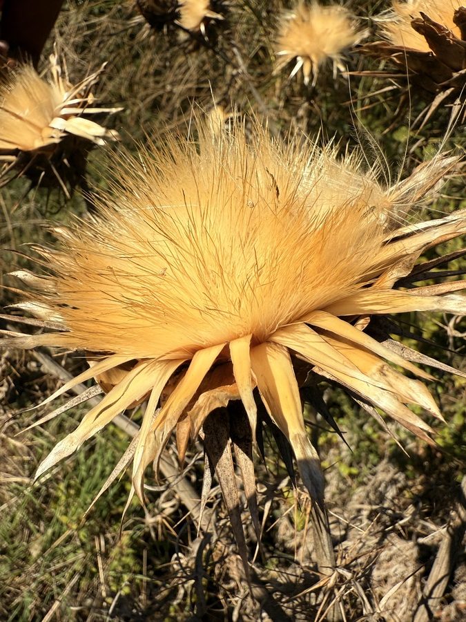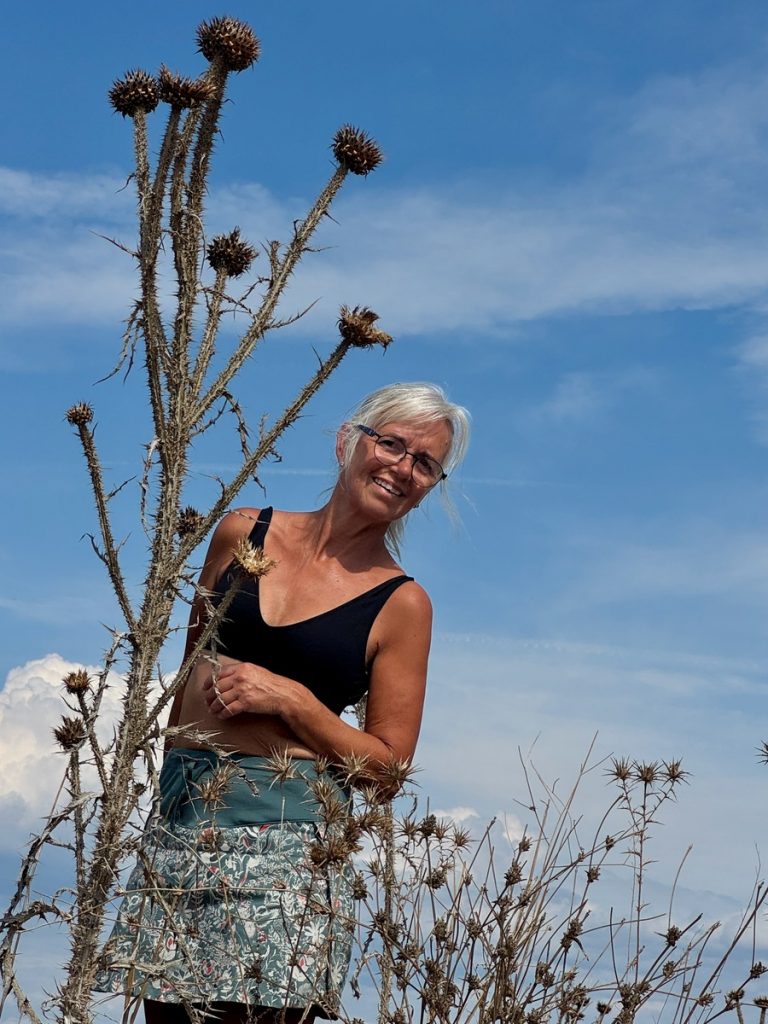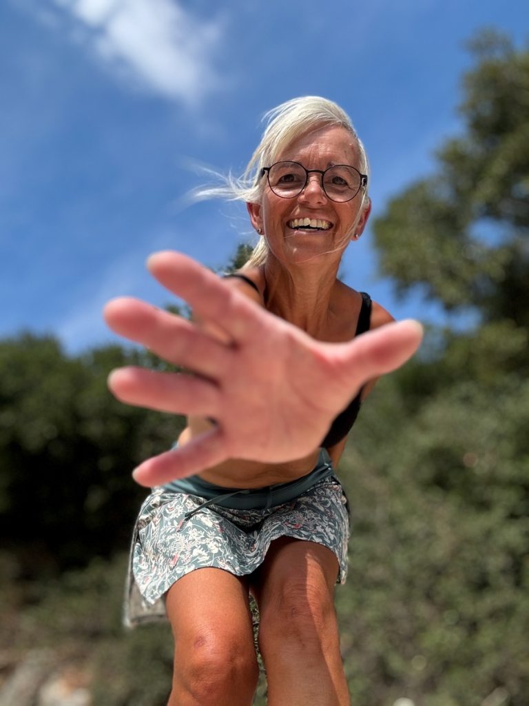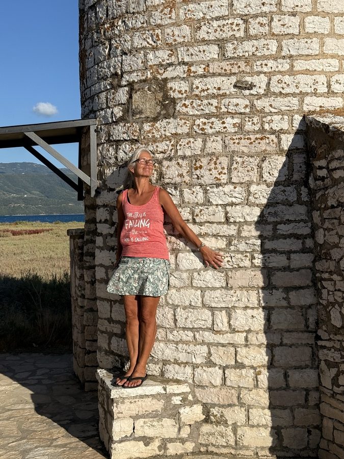 Unterwegs öffnen sich ein paar hübsche Blickachsen auf Golf, Berge und Ankerbucht und es geht vorbei an beeindruckend hohen vertrockneten Diesteln. Zurück an der Ankerbucht sieht sie zwei Schildkröten dicht vor dem Ufer – leider zu kurz, um auf ein Foto gebannt zu werden. Stattdessen gibt es zum Abschluss einen Frappé in der Strandtaverne, bevor „Taxi Werner“ sie wieder abholt.
