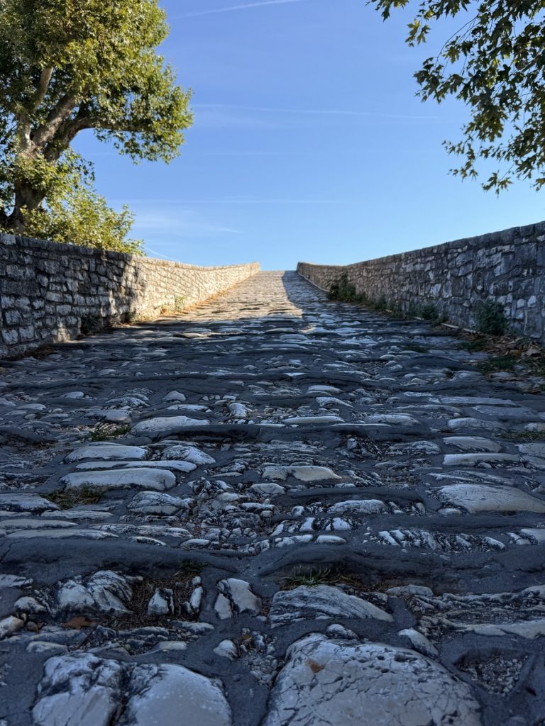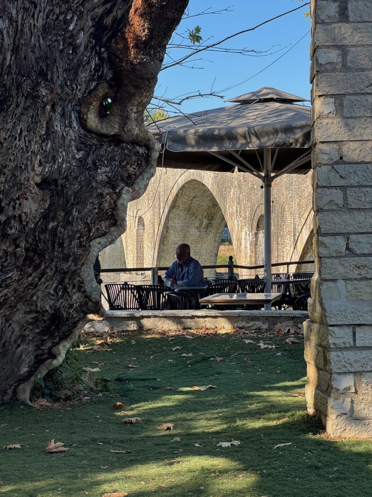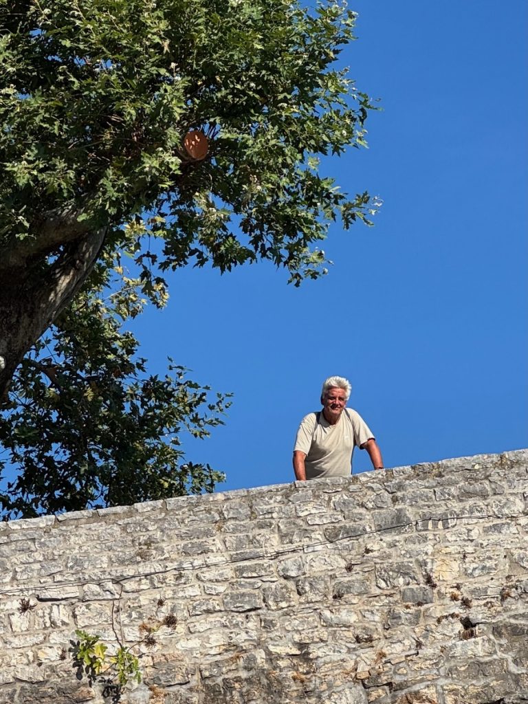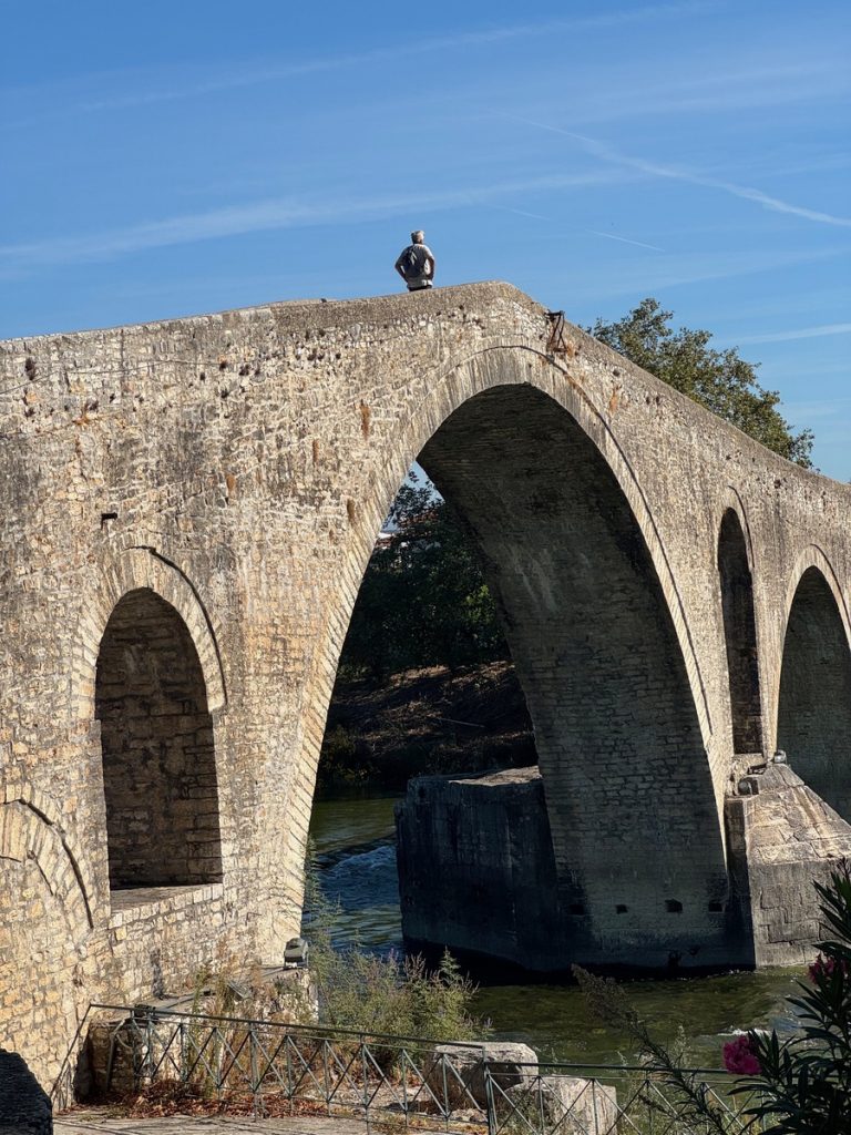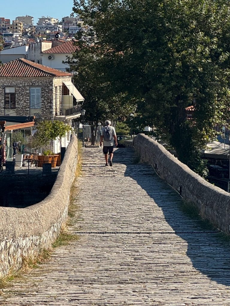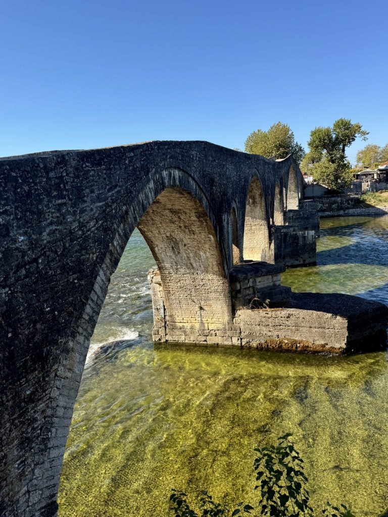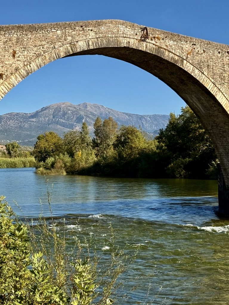 Wir starten gegen 10:00 Uhr – die Luft ist noch angenehm und der Weg führt über lange Abschnitte durch hohes schattenspendendes Schilf oder unterhalb eines Nordhangs ebenfalls im Schatten. Der Anstieg ist so schwach, dass man ihn kaum bemerkt. Nach gut einer Stunde erreichen wir Arta. Die Kreisstadt mit ca. 43.000 Einwohnern hat eine 2.700-jährige Geschichte. Unter den Grundmauern der heutigen Häuser schlummern fast überall Belege früherer Bewohner. Bekannteste Sehenswürdigkeit der Stadt ist die alte Brücke von Arta über den Fluss Arachthos. Die Brücke in ihrem heutigen Aussehen stammt aus dem 17. Jahrhundert. Aber bereits 300 Jahre v. Chr. wurde hier die erste Brücke gebaut. Traurige Berühmtheit erlangte die Brücke durch ein Lied, in dem die Legende des Baus erzählt wird. Der Bau wollte nicht gelingen, alle Tagesarbeiten machte der Fluss nachts wieder zunichte. Erst als der Baumeister seine Frau opferte und in einen Brückenpfosten einmauerte, gelang der Brückenbau.