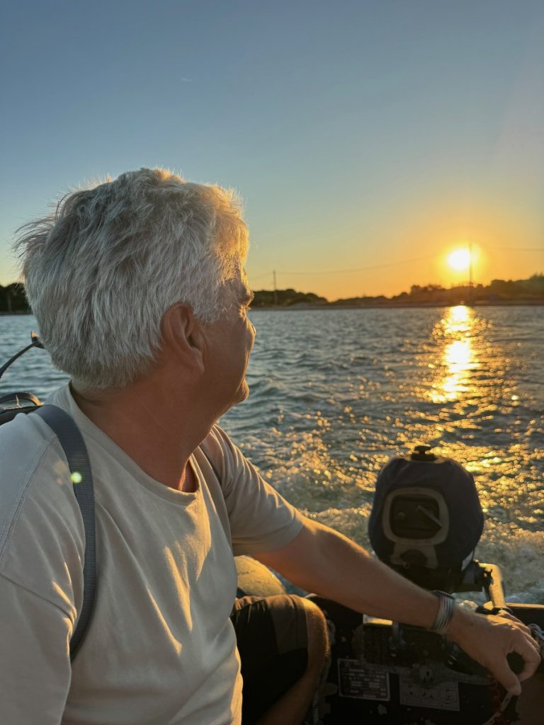 Den Nachmittag verbringen wir lesend im Cockpit und beobachten die Fischer, die ihre Netze quer über die Bucht legen. Ein ankommendes Boot findet gerade noch vor ihnen den Weg in die Bucht. Nach Sonnenuntergang hören wir den uns von Schweinswalen vertrauten Blas. Ein Delfin schwimmt gerade noch erkennbar außerhalb der Netze vorbei. Schade, dass er nicht früher den Weg hierher gefunden hat!