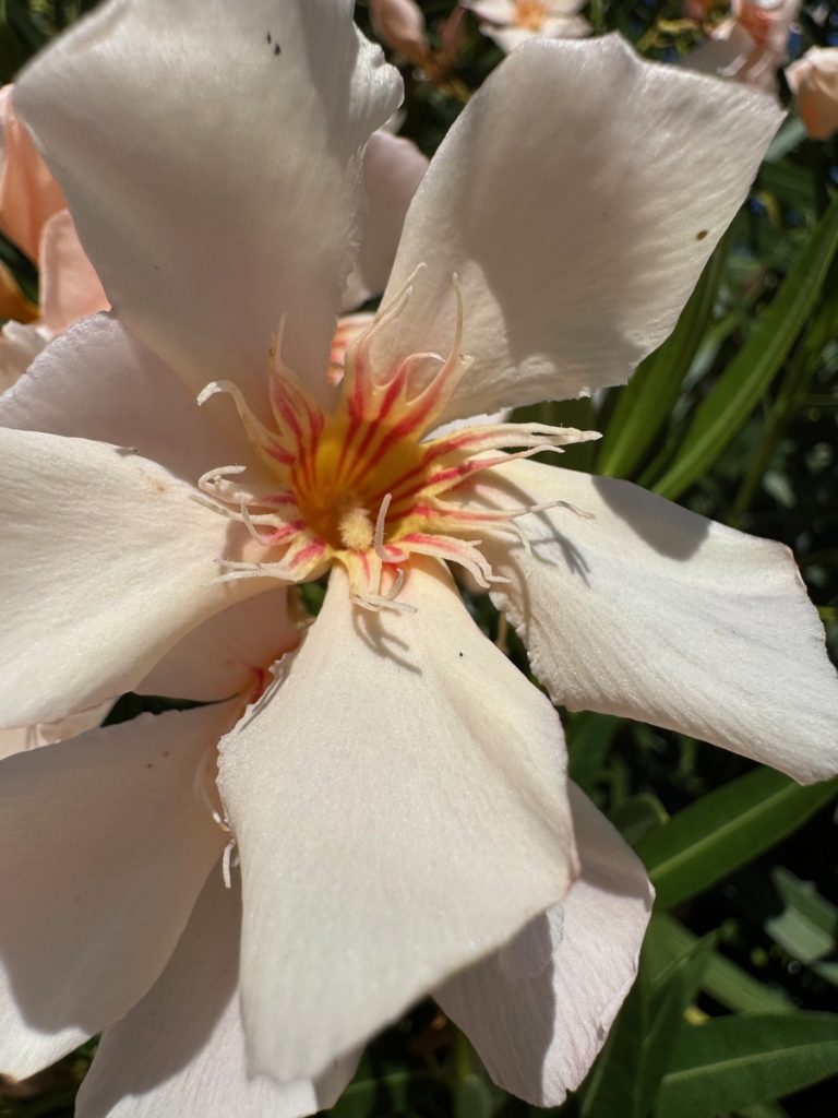 Nach einer verdienten Mittagsruhe wandern wir noch hinaus zum kleinen Leuchtturm, zu dem ein gepflasterter Weg (ebenfalls EU-finanziert) führt. Es ist liebevoll gemacht, beidseits mit Oleander bepflanzt und mit einer Wasserleitung versehen. Aber auch hier wird deutlich, dass sich niemand für die Pflege zuständig fühlt – schade!