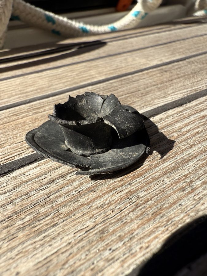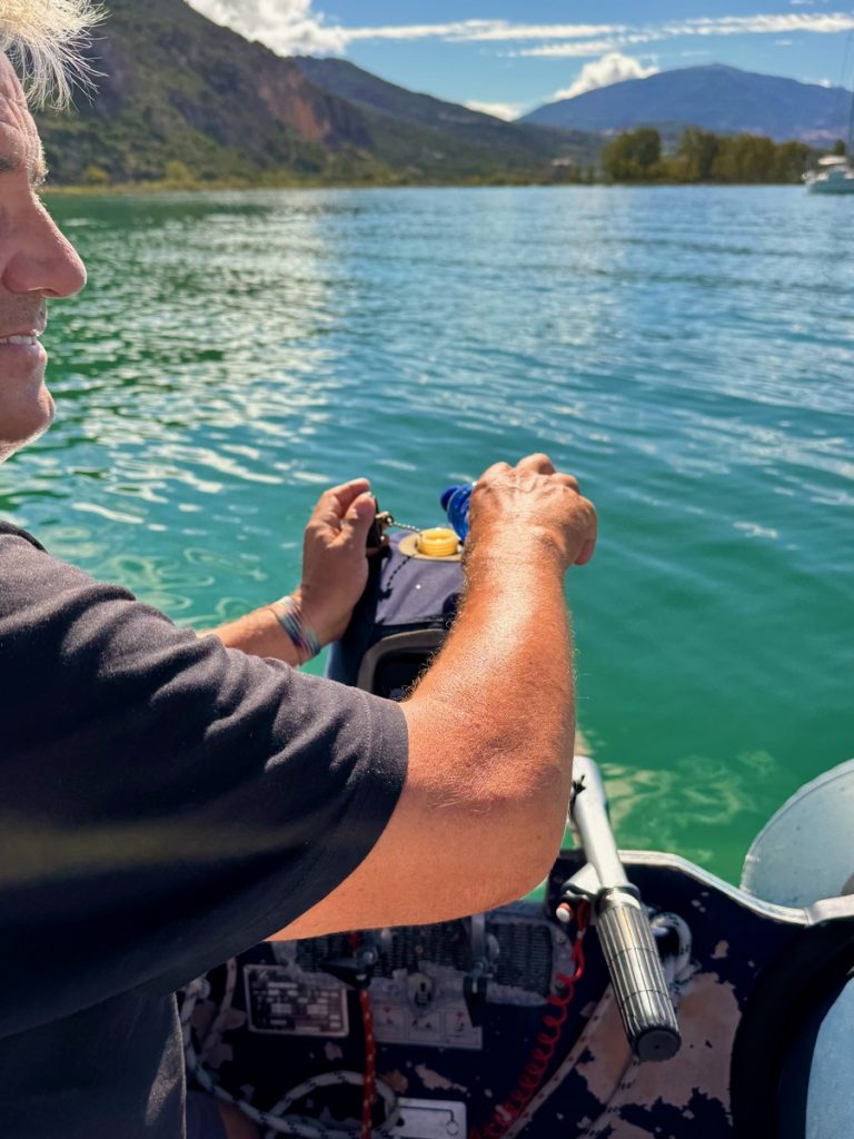 Für Freitag ist erneut schlechtes Wetter vorhergesagt. Diesmal aus West. Diese Wetterstörung wollen wir noch im geschützten Golf abwarten und erst danach in den Norden Richtung Korfu aufbrechen. Werner möchte gern nochmal nach Koronisi und die dortige Lagune etwas erforschen und Barbara wünscht sich nochmals Kopraina mit einer Radtour nach Menidi. Die Distanzen sind ja alle übersichtlich, warum also nicht! Aber vorher proviantieren wir uns hier in Preveza und holen unsere Wäsche ab. Außerdem gilt es zu erforschen, warum unser Dinghi Wasser nimmt. Wir ziehen es an Deck und suchen den Boden nach möglichen Löchern ab – Fehlanzeige, alles sieht gut aus. Werner untersucht daraufhin das Ventil am Heck des Dinghis um Wasser aus dem Boot abzulassen und findet den Übertäter: Die Dichtung ist komplett kaputt und daher nimmt das Dinghi hier Wasser. In einem der Marineläden in Preveza finden wir Ersatz.