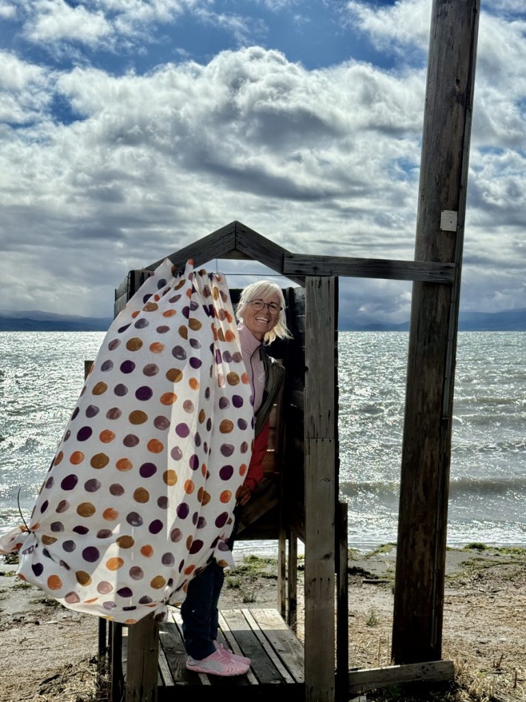 Eure Reise auf diese Weise begleiten zu können, macht richtig Freude, ich kann die Stille, die von einigen Orten ausgeht, aber auch die herrlichen Momente in der Natur ( Sichten der Delphine, der Anblick der Pelikane und der Flamingos), die Berge in ihren Schattierungen mit dem glitzerndem Wasser im Vordergrund, wunderbar nachempfinden! Verschiedene Fotos assoziieren August Macke – und ich kriege Lust, mich mit einer Staffelei an diese schönen Orte zu begeben, um zu malen! Ruhe kehrt ein beim Lesen und Betrachten der Bilder -DANKE dafür ; angesichts der Nachrichten in Zeitungen und im Fernsehen , nicht im Krieg zu dein, sondern keinen Frieden mehr zu haben!
