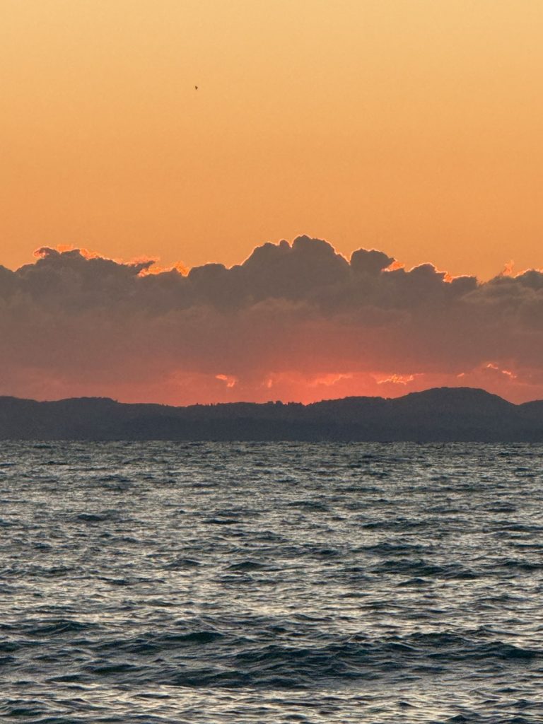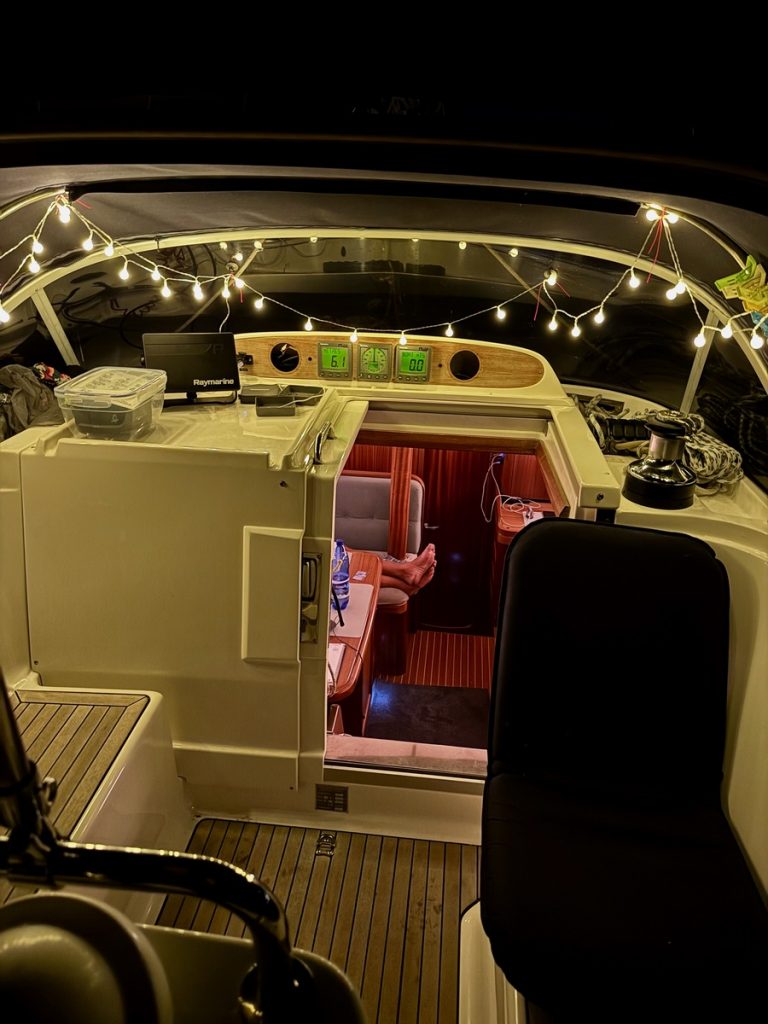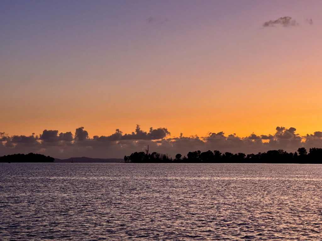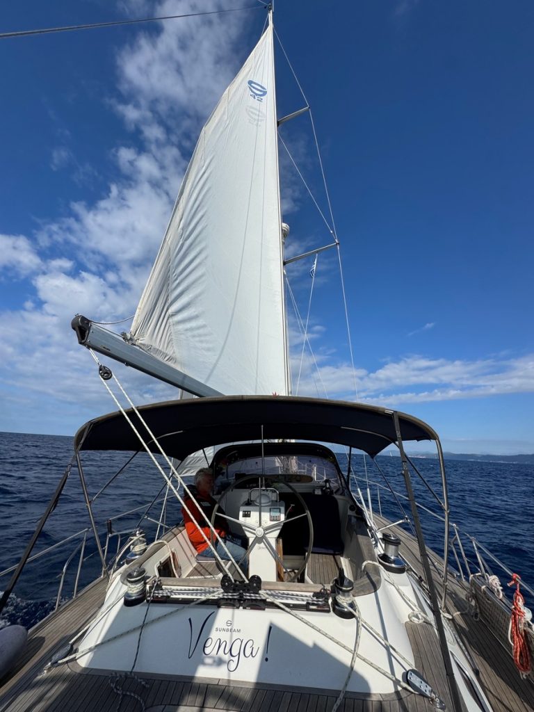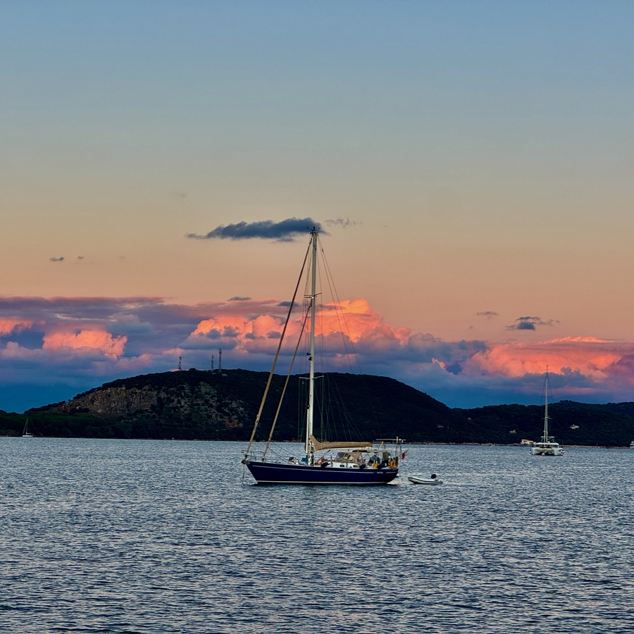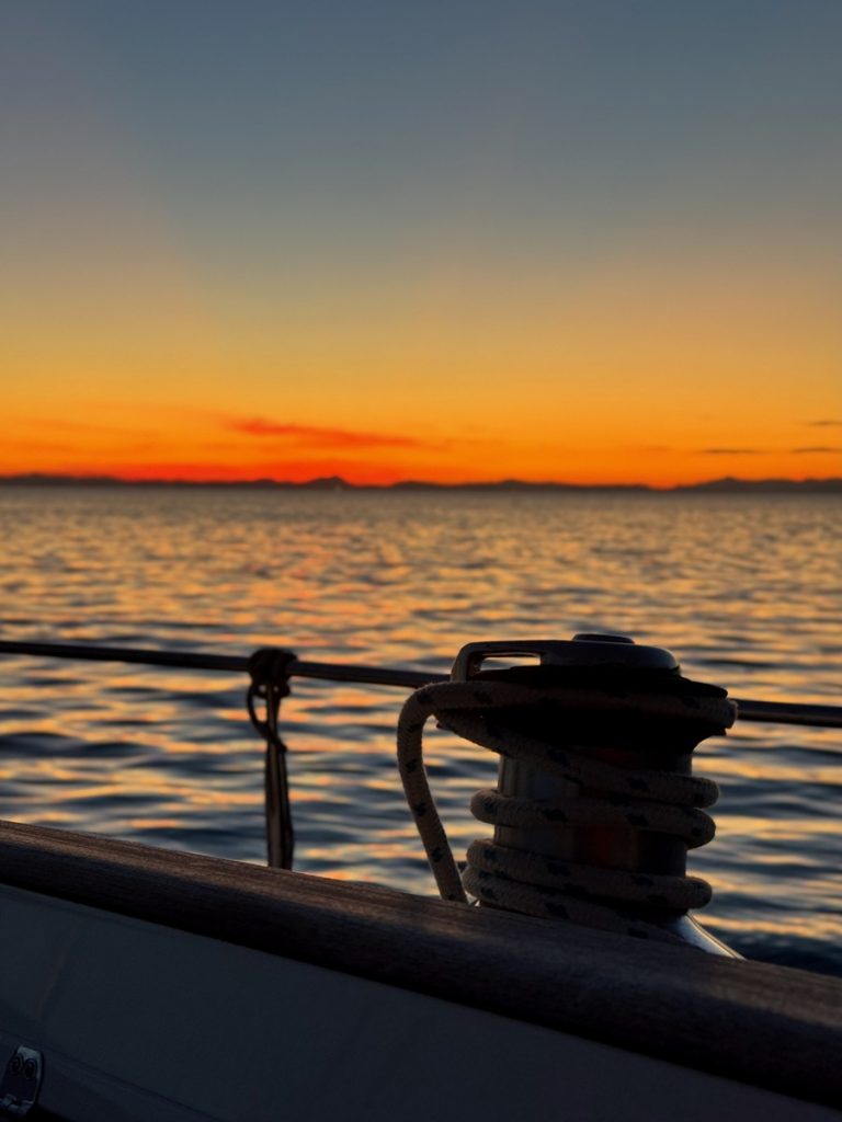 Nach knapp 10 Kilometern erreichen wir wieder unser Dinghi. Der Wind hat etwas nachgelassen und so bleibt die Überfahrt zur Venga! erfreulich trocken. Wir haben das Bimini heute weggeklappt und so können wir nun noch etwas nachmittägliche Sonne im Cockpit genießen, bevor es zum Essen unter Deck geht. Beim Videocall mit Sohn Markus stellen wir fest, dass es bei uns schon stockdunkel ist, während bei ihm im Portugalurlaub die Sonne erst in einer Stunde untergeht. Kein Wunder, denn zwischen uns liegen 2.500 Kilometer von Ost nach West.