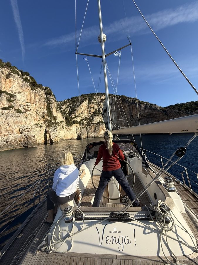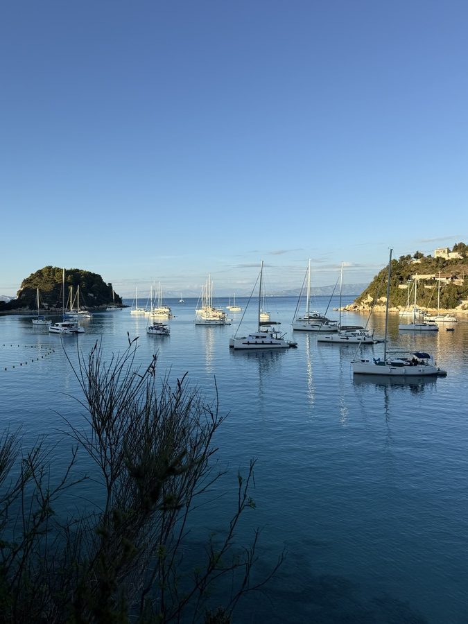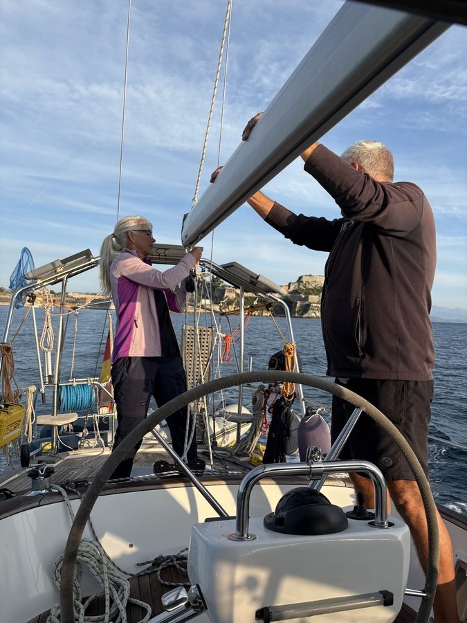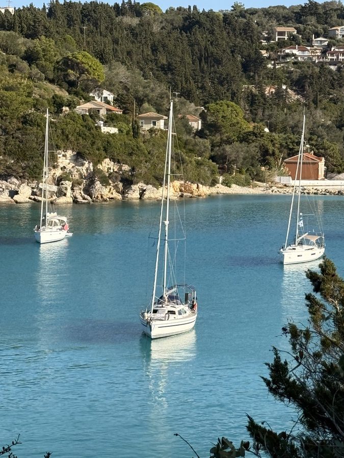 Nach dem Herbsteinbruch mit Regen und kräftigem Wind ist für den Wochenanfang wieder herrliches Wetter angekündigt. Wir verabschieden uns von Korfu und nehmen Kurs nach Süden, um die karibisch anmutenden Buchten von Paxos und Antipaxos zu erkunden. Sonnenschein bedeutet hier allerdings meist auch Flaute: Selbst die sonst im Sommer verlässlichen thermischen Winde lassen nach, da sich die Temperaturen von Meer und Land stark angeglichen haben und der „Motor“ dieser Winde nicht mehr richtig läuft. Das Meer ist mit 21 Grad noch angenehm temperiert, die Luft erreicht am Nachmittag „nur noch“ 23 bis 25 Grad.