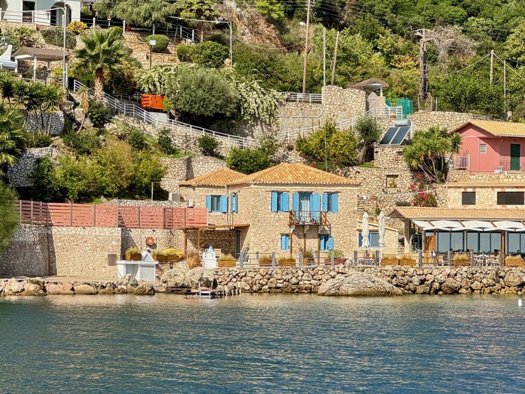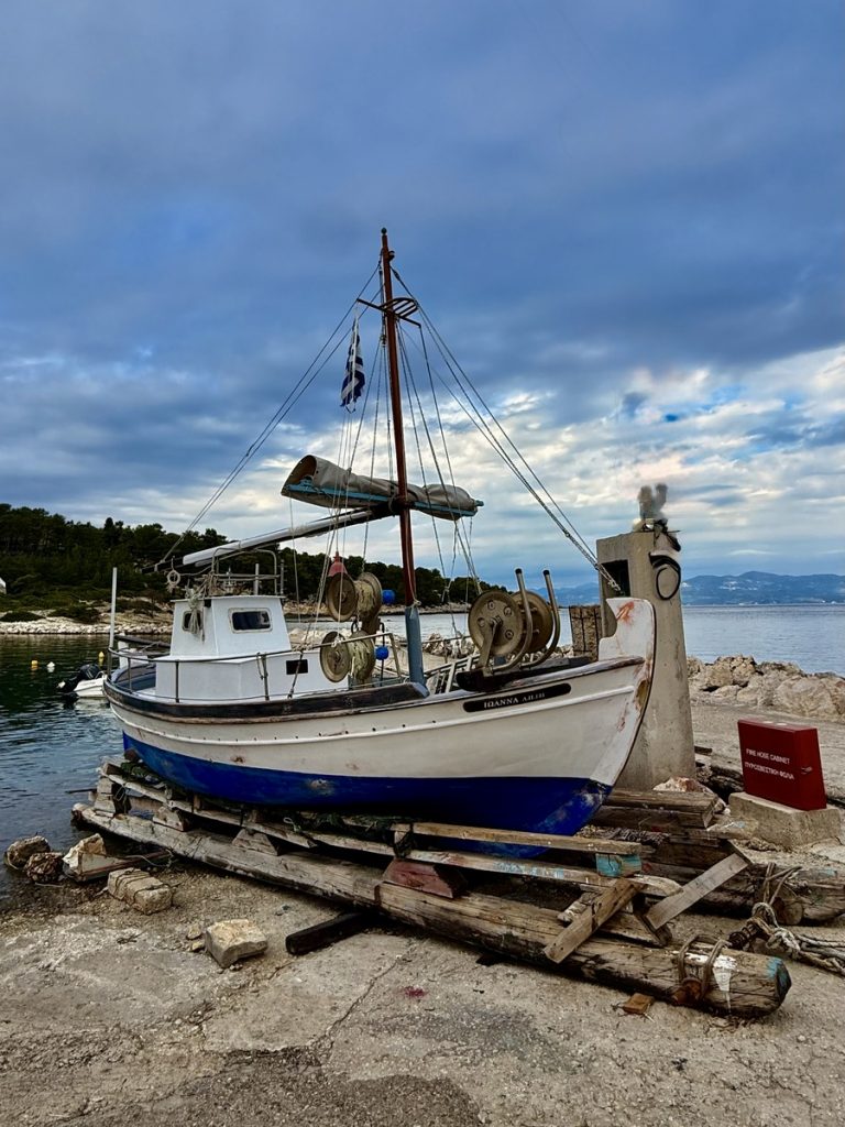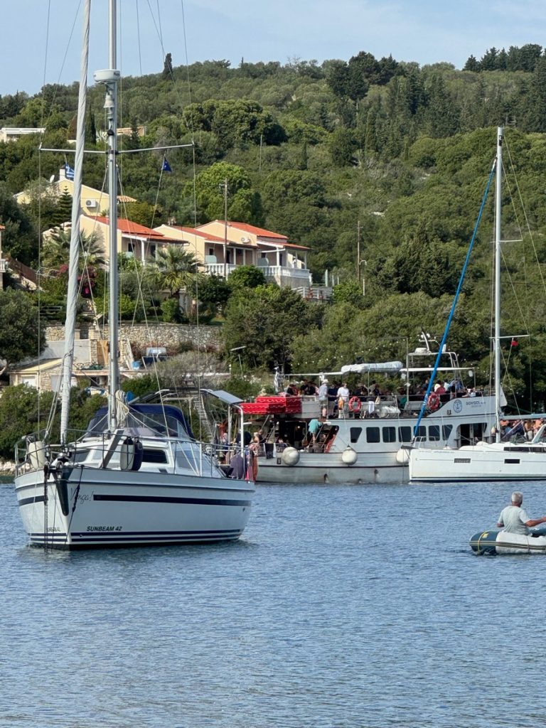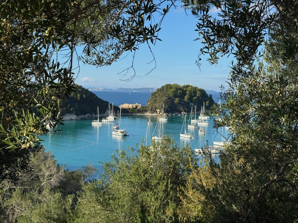 In der Vlycho-Bay haben wir beim Vlycho Yachtclub einen Liegeplatz für die nächsten 8 Tage reserviert und werden von einem Marinero beim Anlegen unterstützt. Hier gibt es Wasser an der Brücke, Toiletten und Duschen an Land. Nur Strom leider nicht, aber es soll die nächsten Tage ausreichend Sonne geben, sodass die Solarpaneele eigentlich genug Energie liefern sollten.