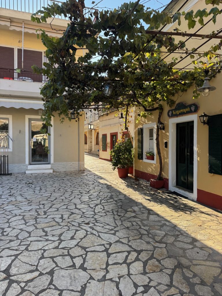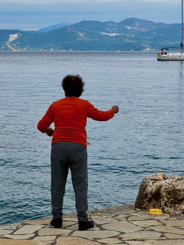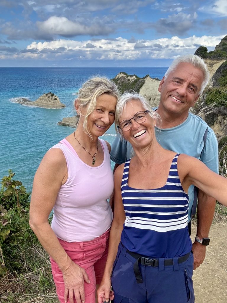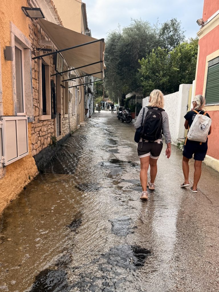Nach erholsamer Nachtruhe (so ein Hafen hat schon seine Vorteile) gibt es erstmal einen Morgenkaffee zum richtig wach werden. Nach dem ersten Schluck rümpft Werner die Nase. „Der schmeckt ja heute merkwürdig! Hast du da Salz drin?“, ist sein Kommentar. Wir schauen uns an, Barbara überlegt, was sie anders gemacht haben könnte als gestern – NICHTS! Und dann drängt sich langsam ein möglicher Grund ins Bewusstsein: Das „neue“ Wasser. Barbara kostet am Wasserhan und richtig, es schmeckt salzig. Wie kann das sein? Korfu hat reichlich Wasser! Werner untersucht die Wasserhähne am Steg und stellt fest, dass sich an jeder Säule ein Wasserhahn mit einer Nummer befindet und einer ohne – und ohne jegliche Kennzeichnung!!! Der ohne Nummer gibt an allen Säulen Salzwasser, der andere erst nach Freischaltung mit einen Code Süßwasser. Wir haben also gestern unseren Tank mit Salzwasser befüllt und das muss nun wieder komplett raus. Unsere Wasserpumpe arbeitet an die zwei Stunden an dieser 700L Aufgabe und wird zwischenzeitlich mit kalten Tüchern etwas gekühlt, denn sie läuft ordentlich heiß. Werner beschließt, an Bord zu bleiben und sich um den „Salat“ zu kümmern, während Barbara und Moni zu einem Ausflug aufbrechen.