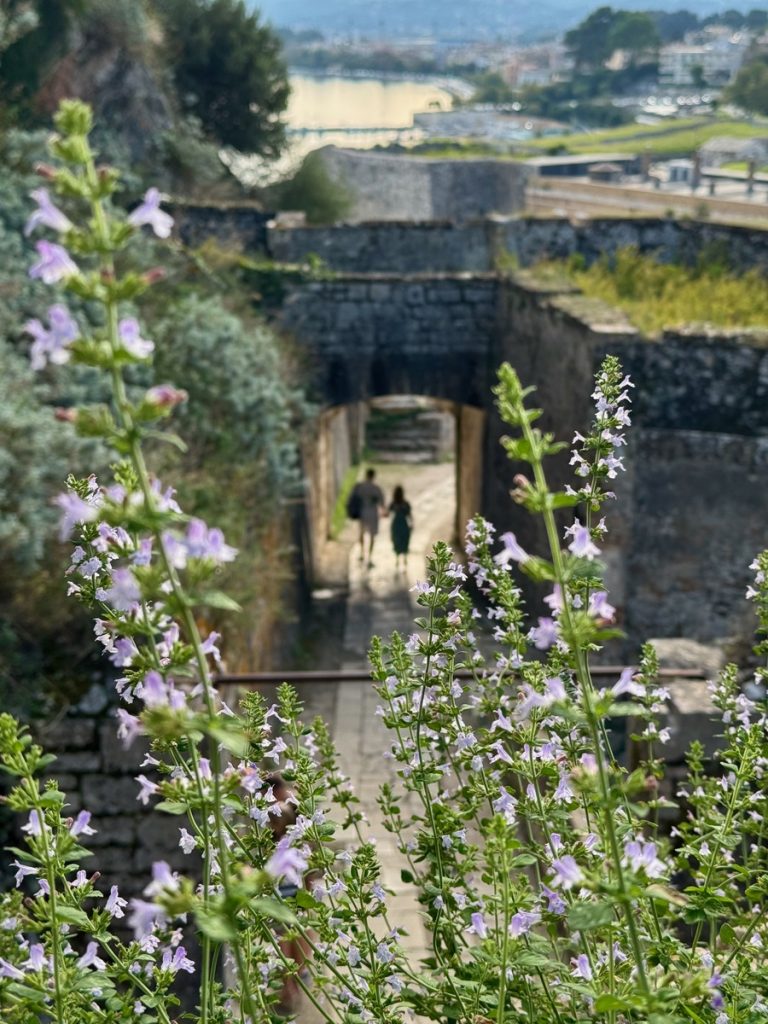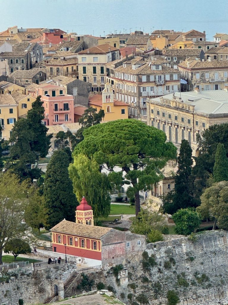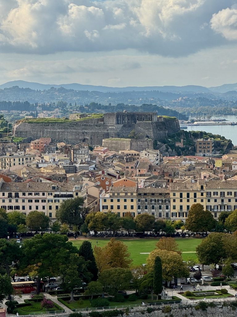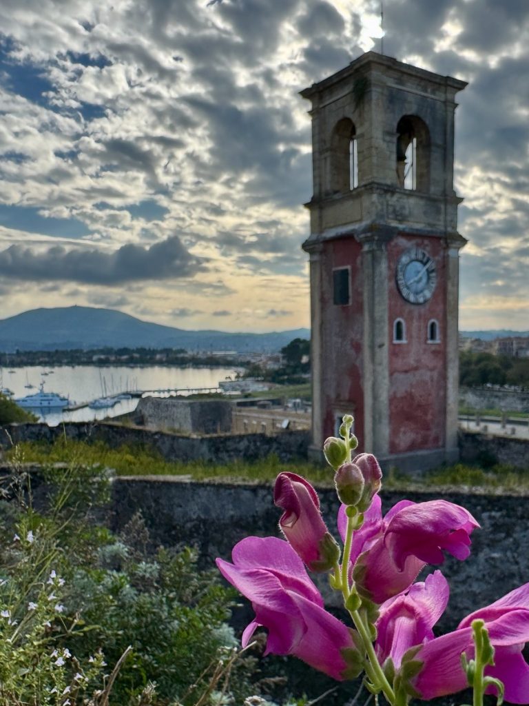 So bringt Barbara nun Moni mit den Einkäufen zum Dinghidock an der alten Festung, bevor sie den Leihwagen zurückbringt. Auf dem Fußmarsch zurück, schummelt sie sich noch einmal in die alte Festung, um zum Leuchtturm aufzusteigen, der beim letzten Besuch wegen Schlechtwetter gesperrt war. Von oben hat man einen wunderbaren Rundumblick auf Korfu, die Stadt und die gegenüberliegende Festlandsküste.