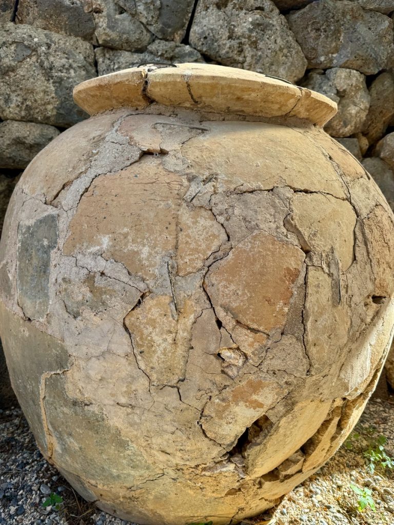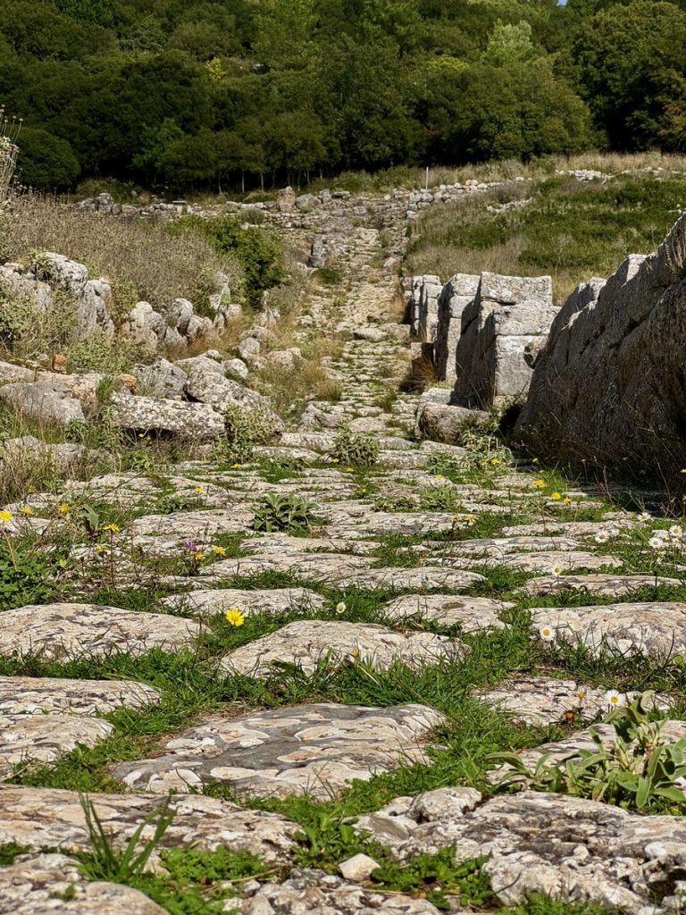 Wir sind die ersten Besucher des Tages und haben die Ausgrabungsstätte erstmal für uns allein. Das alte Kassiope entstand in der Mitte des 4. Jahrhunderts v.Chr. und war das administrative, religiöse, politische und ökonomische Zentrum der Region, in der die Einwohner überwiegend Landwirtschaft betrieben und in unbefestigten Dörfern lebten. Die Stadt hatte zu ihrer Blütezeit 8 bis 10 tausend Einwohner. Die Hauptstraße führte der Länge nach durch den Ort. Von ihr zweigten im rechten Winkel die Nebenstraßen ab. Fast am Ortsende führte eine dieser Querstraßen hinauf zum Amphitheater, das in den geschwungenen Berghang gebaut wurde. In der Mitte des Ortes gab es den Versammlungs- und Marktplatz, die Agora, und gleich nebenan ein aufwändig gestaltetes Gästehaus, das man sich auch heute anhand der teilweise noch vorhandenen Außenmauern, Säulen und Grundmauern gut räumlich vorstellen kann. Es hatte einen quadratischen Grundriss und war zweistöckig. Rund um den ebenfalls quadratischen Innenhof mit Säulengang lagen die Gästezimmer.