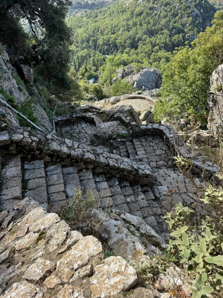 Neun Stunden Sonne prophezeit WetterOnline für den heutigen Tag. Das ist genau, was wir uns für eine Schluchtwanderung erhoffen. Wir wollen zum Fluss Acheron, genauer zur Schlucht, die der Sage nach eines der Tore zur Unterwelt sein soll. Fahrtzeit ab Boot ca. 1,5 Stunden, also nicht zu spät los! Wir schaffen es vor zehn – das gilt doch noch als früh?!? Unterwegs sehen wir viele Charterboote an den Brücken, bei denen die Segel zum trocknen gesetzt sind. Wind weht keiner, also optimale Bedingungen für die Slippvorbereitungen zur Einwinterung der Boote.