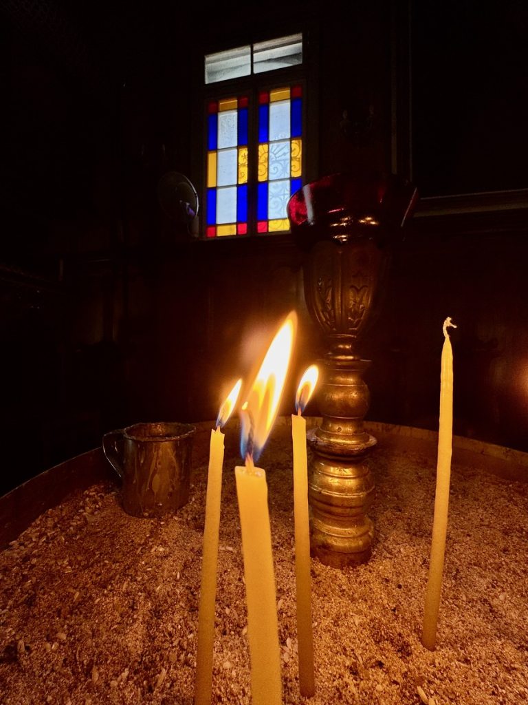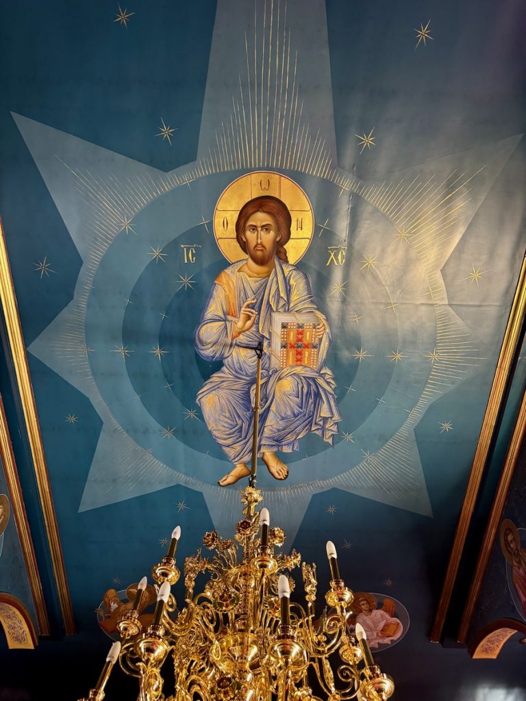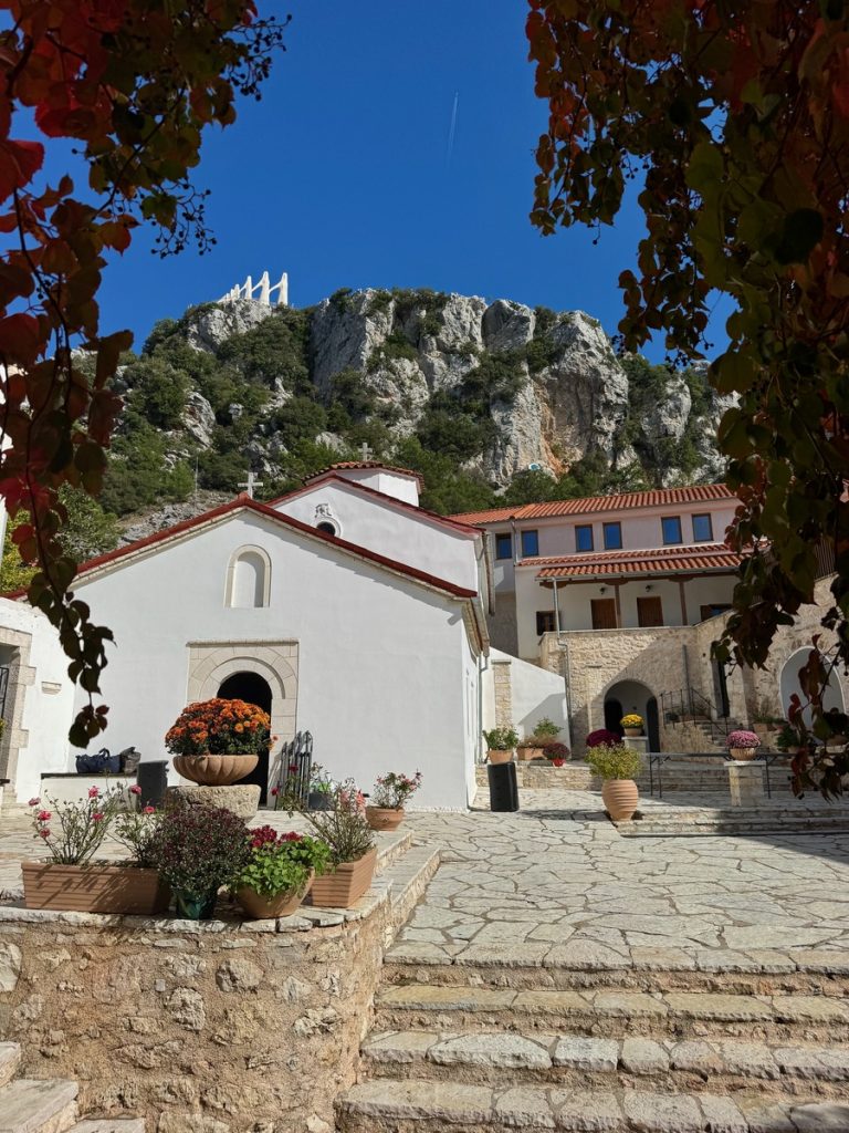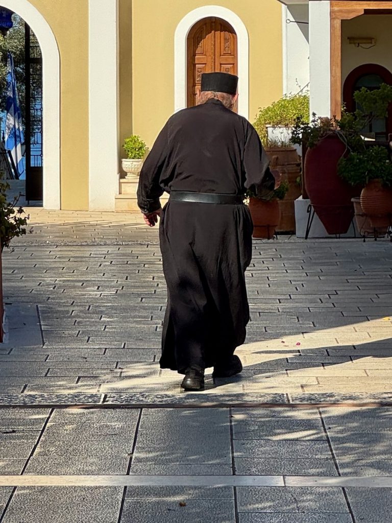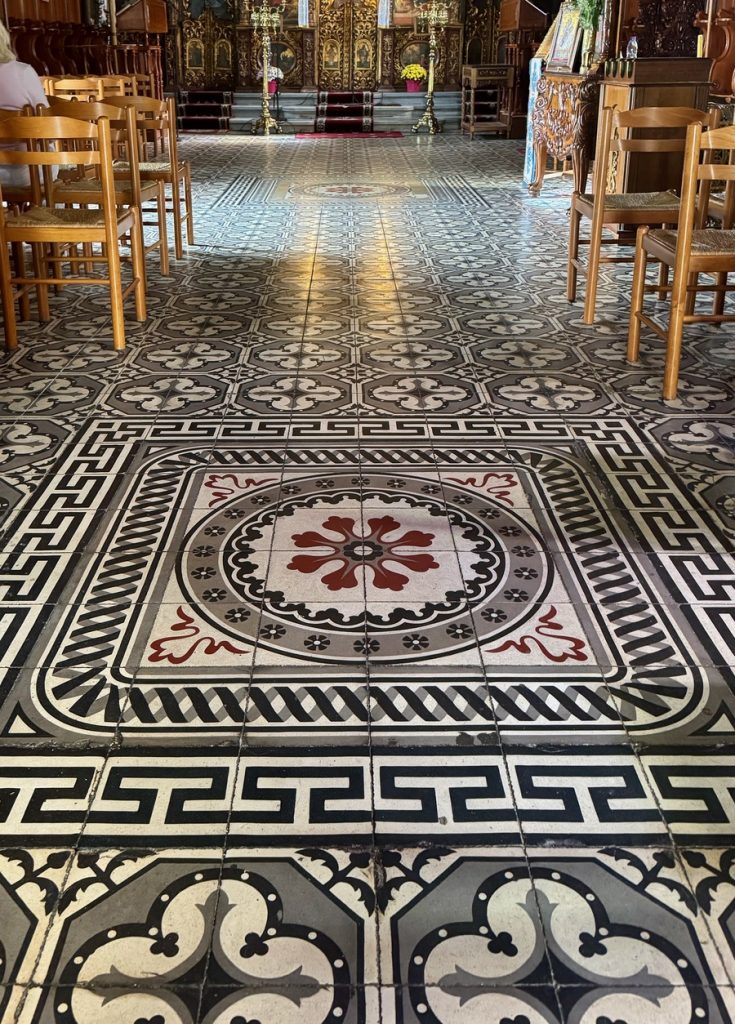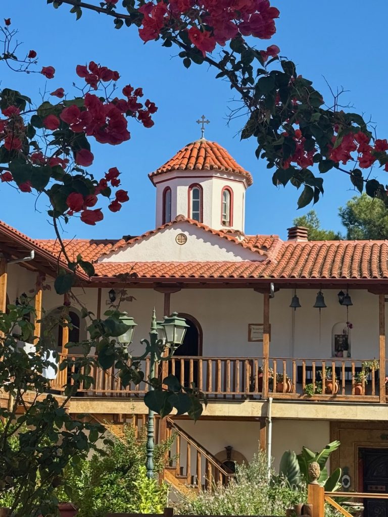 Nach dem Abstieg dürfen wir noch einen schnellen Blick ins Kloster werfen. Es ist um diese Zeit eigentlich geschlossen, aber eine Nonne, die gerade herauskommt, hat Mitleid mit uns. Morgen ist der Namenstag ihres Namensgebers und sie sind mit der Vorbereitung der Feierlichkeiten sehr beschäftigt, weshalb wir wirklich nur einen ganz kleinen Blick hineinwerfen können.