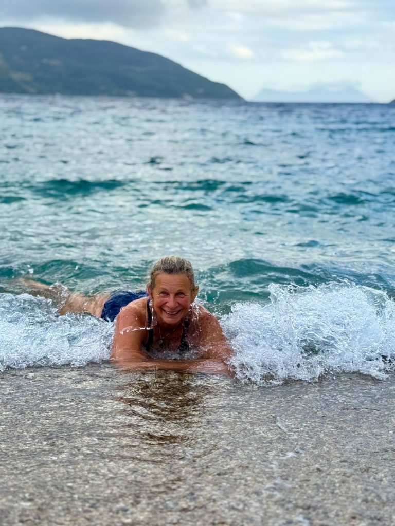 Nachdem Werner geschäftlich für eine Woche nach Deutschland fliegen musste, verbringt die Skipperin die Zeit mit Freundin Moni auf Lefkada mit Wandern, Sightseeing und ganz viel Mee(h)r. Venga! liegt währenddessen stationär im Vliho Yachtclub und dient als „schwimmende Ferienwohnung“. So genießen wir den Luxus von heißer Dusche und „richtiger“ Toilette – auch mal schön! Die Tage sind randvoll gefüllt mit Erlebnissen, Eindrücken und den besonderen Farben der Insel.