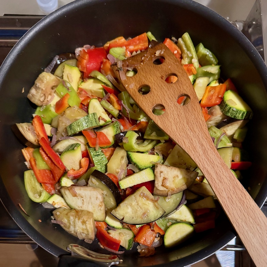 Zum Abschluss des Tages darf aber etwas Bewegung und ein Bad für Moni nicht fehlen. Also spazieren wir zum nächstgelegenen Strand „Desimi Beach“. Das Wasser in der Bucht von Vliho lädt uns nicht so richtig zum Baden ein. Hier liegen sehr viele Boote vor Anker und ob die alle einen Fäkalientank besitzen, wagen wir zu bezweifeln… Zum Abendessen kocht Moni: Gemüsepfanne-Tomaten-Pfanne mit Bandnudeln.