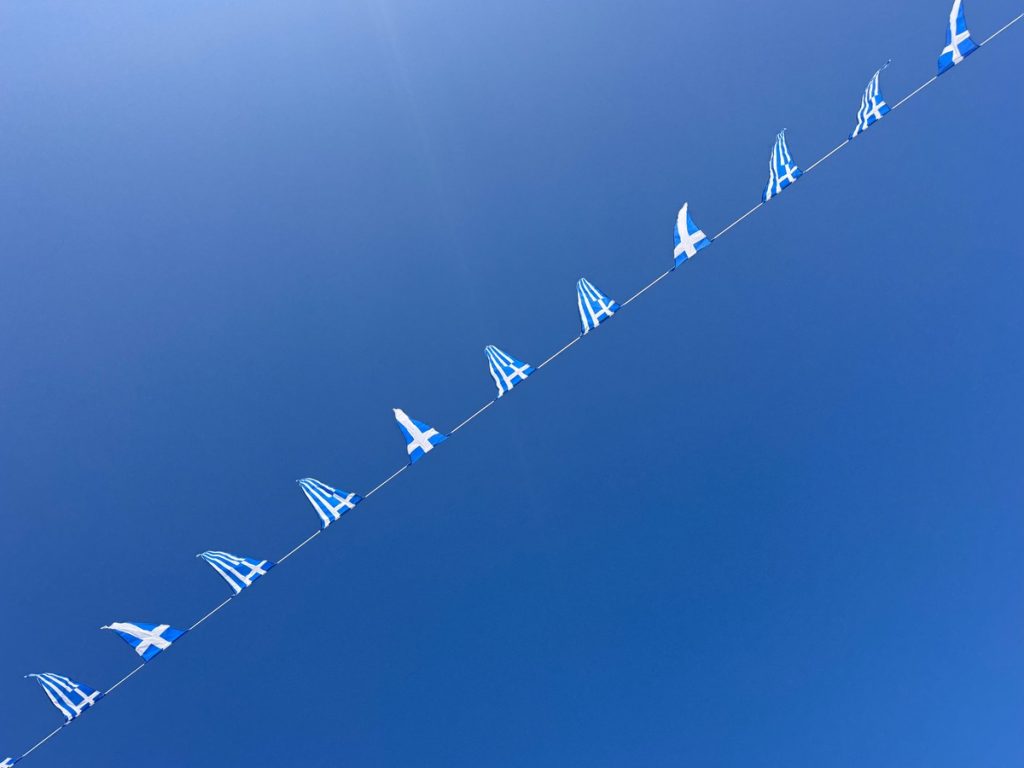 Gestern erfuhren wir beim Bezahlen unseres Liegeplatzes, dass am heutigen Ochi-Tag nahezu alles in Griechenland geschlossen hat und in Lefkada Stadt gegen Mittag eine Festparade stattfinden wird. Hintergrund des Feiertages: Am 28. Oktober 1940, lehnten die Griechen Forderungen des italienischen Diktators Mussolini ab. Er wollte, dass Griechenland sich Italien bis zum 28. Oktober unterwerfen solle – und drohte mit Krieg. Angeblich reagierte die griechische Regierung damals mit einem kurzen, aber eindeutigen „Ochi“ (= „Nein“). Der heutige Nationalfeiertag heißt deshalb auch „Nein“-Tag.
