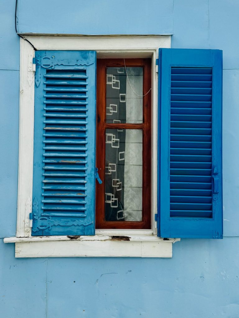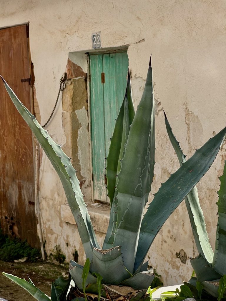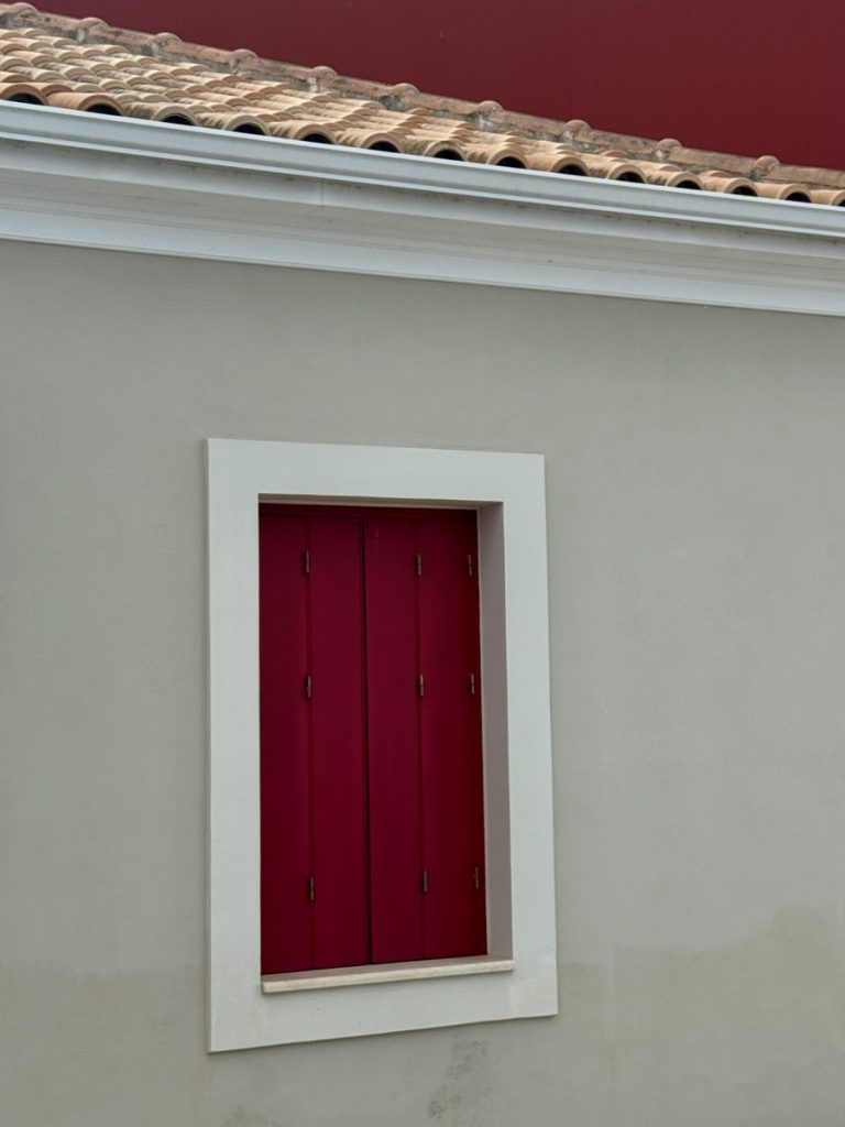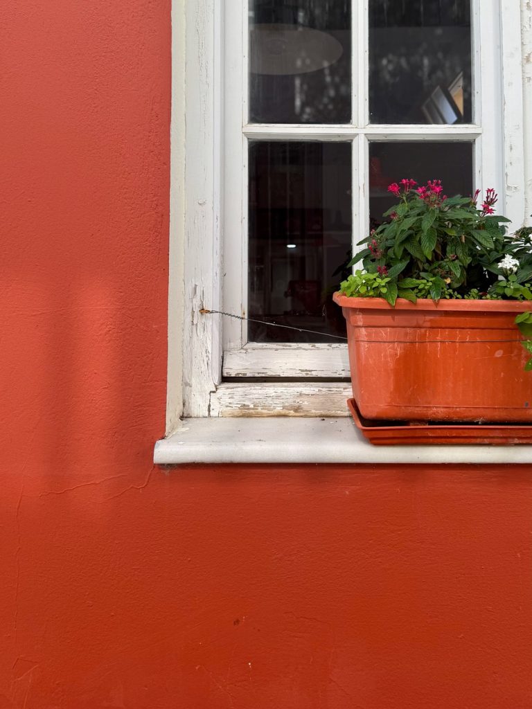 Unser Plan geht auf: die kleinen autofreien Gassen sind menschenleer. Das warme Morgenlicht bringt die Farben der Häuser mit ihren bunten Fassaden, kontrastierenden Fenstern, Fensterläden und Türen noch mehr zum Leuchten. Wir baden in einem wahren Farbenmeer! Lefkada Stadt wurde genau wie der Hauptort auf Zakynthos durch ein verheerendes Erdbeben 1953 in großen Teilen zerstört. Beim Wiederaufbau, blieb man allerdings eng am Originalzustand. Ein weiteres Seebeben traf die Insel 2003 mit Stärke der 6,4 und beschädigte wiederum viele Gebäude und Infrastruktur, hatte aber zum Glück nicht so katastropale Folgen wie das Beben von 1953. Mit diesem Wissen schaut man etwas anders auf die teilweise schlechten Wege und Straßen und setzt den Fokus mehr auf die schönen Dinge. Genau das ist nach unserer Erfahrung auch das Naturell der Griechen. Sie bemühen sich, mit den wenigen, ihnen zur Verfügung stehenden Mitteln, ihre Häuser hübsch aussehen zu lassen. Über für sie nicht änderbare Dinge wie herabhängende Stromkabel oder defekte Straßenbeläge, sehen sie hinweg. Dafür sind ihnen farbliche Akzente sehr wichtig und so werden oftmals die außen am Haus angebrachten Stromzähler, Briefkästen und Ähnliches in der gleichen Farbe gestrichen, die die Türen und Fenster.