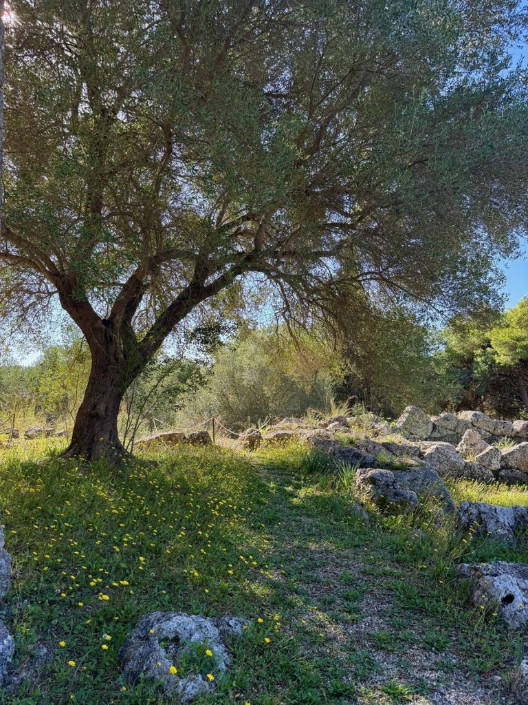 Nachdem wir Werner am Flughafen „abgeliefert“ haben und dort auch gleich unseren Leihwagen tauschen konnten (beim ersten leuchteten zwei Kontrollleuchten permanent), führt unser Weg uns Richtung Norden. Unser Ziel ist die Ausgrabungsstätte von Alt Kassiope. Dort soll man zum einen sehr gut die ursprüngliche Anordnung der Straßen und Häuser sehen können, als auch aus einem Amphitheater einen fantastischen Weitblick über ionisches Meer und Ambrakischen Golf genießen können. In einem Geschäft für am Straßenrand kaufen wir etwas Gemüse und Spezialitäten, bevor unser kleiner Peugeot uns den Berg hinaufträgt.