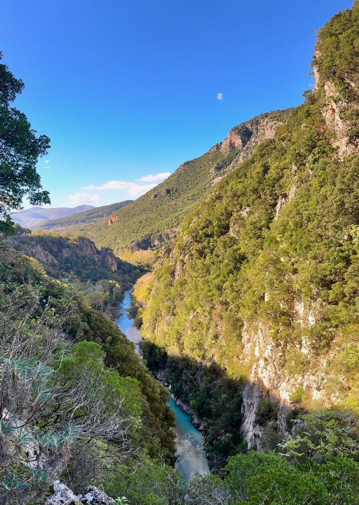 Wir erklimmen den Hang auf der anderen Uferseite und haben von oben nochmals einen fantastischen Blick auf Schlucht und Flussdelta. In der Sonne erwachen auch langsam unsere Füße wieder zum Leben. Bevor wir aber wieder zum Auto gelangen, heißt es nochmals die kalten Fluten durchqueren. Danach gelüstet es uns nach einem Frappé, aber es ist Mittagszeit und in dem kleinen Ort ist alles geschlossen. Also müssen wir uns etwas in Geduld üben. Unser nächstes Ziel ist der Küstenort Parga und dort sollte doch noch ein Café geöffnet haben.
