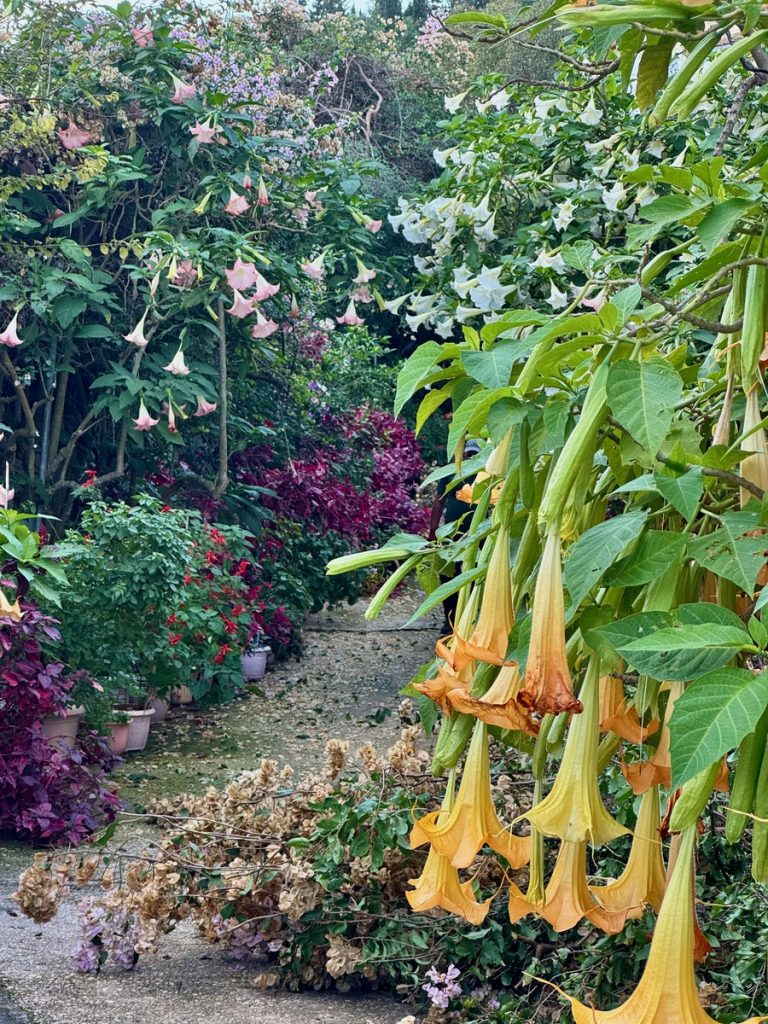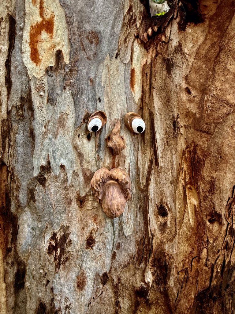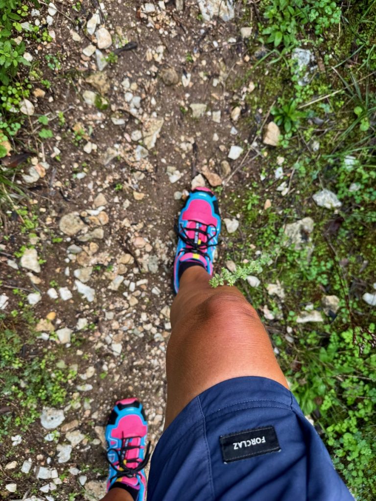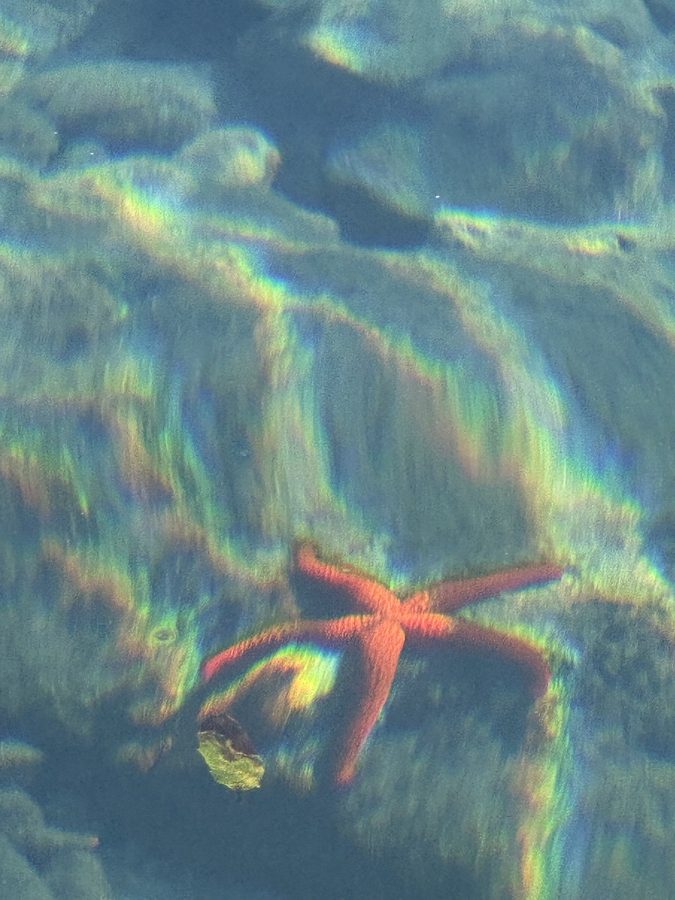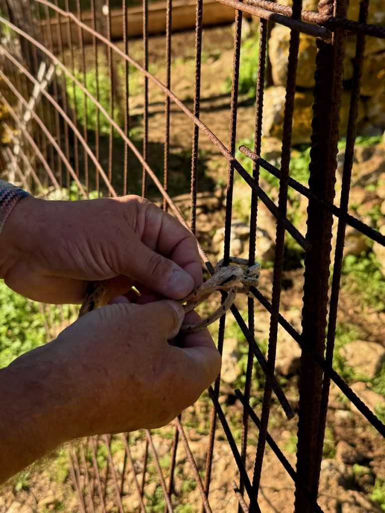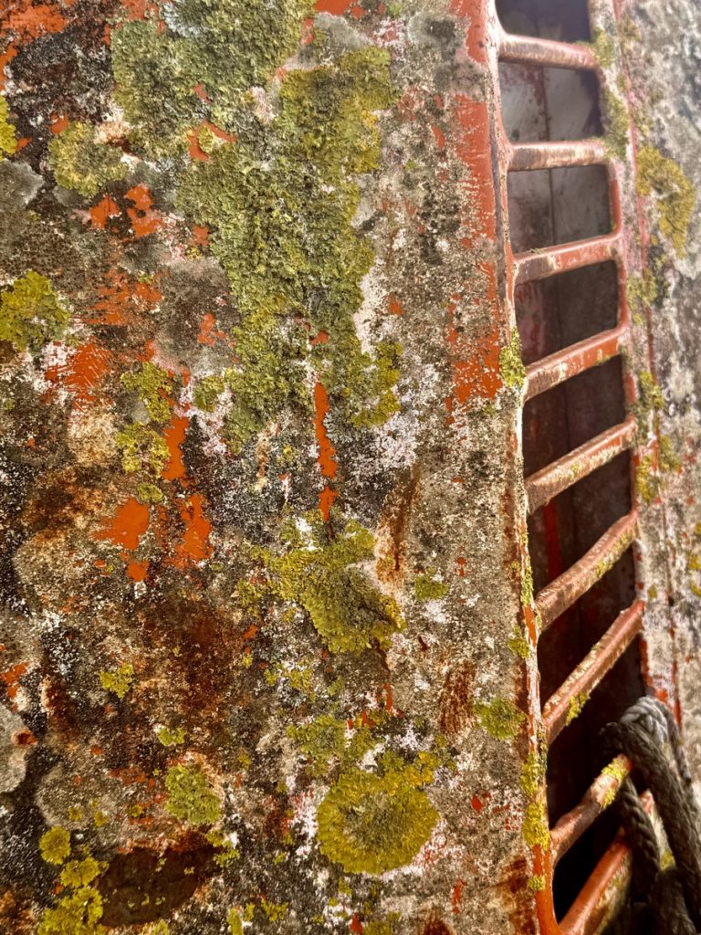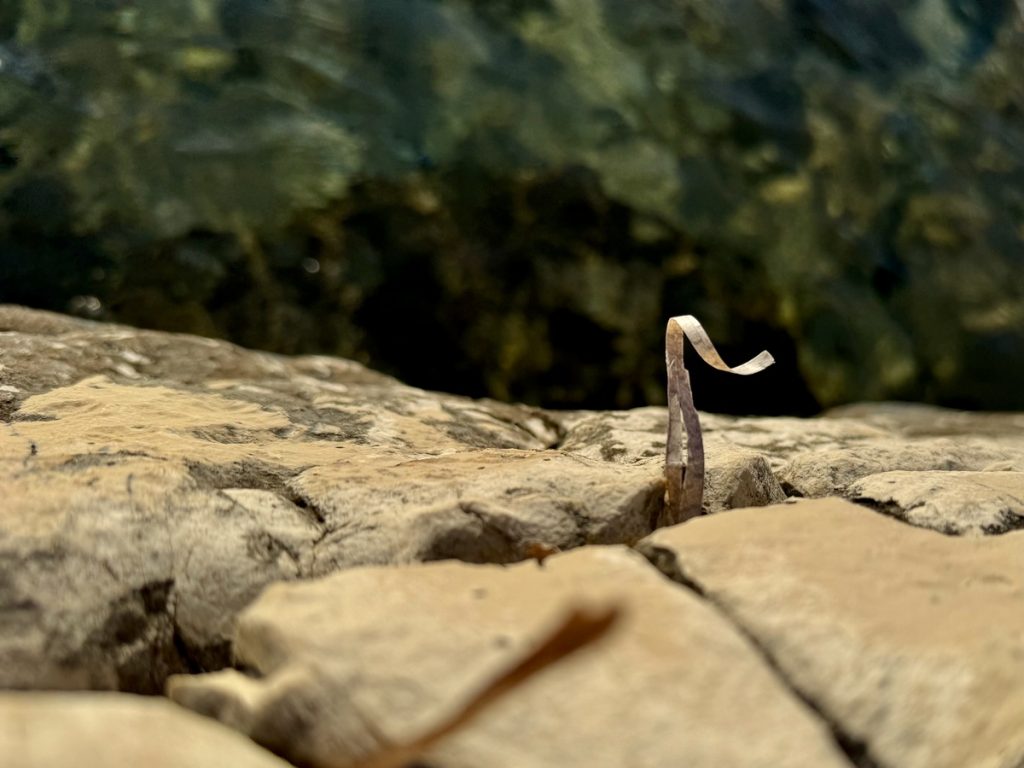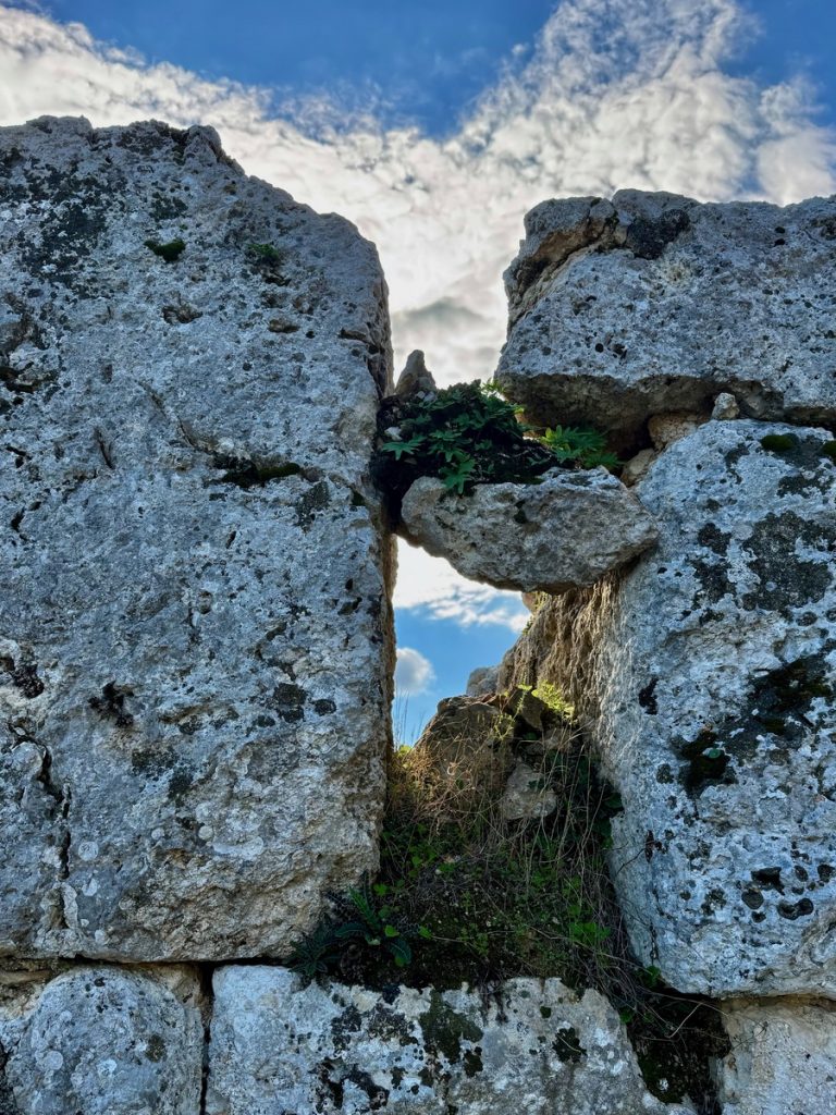 Sie führt uns durch den Ort hinauf bis zur Kirche über gepflasterte Wege, um dann in einen Trampelpfad zu münden. Wir lieben solche kleinen Pfade und folgen diesem anfangs durch Olivenhaine und vorbei an einzelnen Häusern. Heute trägt die Skipperin auch angemessenes Schuhwerk für diese Wanderung auf rutschigen Wegen. In einem Olivenhain entdecken wir merkwürdige rote Gebilde. Mit etwas Fantasie könnte man darin Überbleibsel von Halloween vermuten: blutige Hände, die aus dem Erdreich nach uns greifen. Nein, jetzt geht die Fantasie dann doch mit der Skipperin durch. Werner zoomt mit der Handykamera heran und macht ein Foto, das die KI dann einer Pflanze zuordnet. Es könnte sich um den Roten Gitterling und damit um einen Pilz handeln. Der Weg führt steiler bergan und wir erreichen auf ca. 190 Höhenmetern den Eingang zur Nymphen Höhle.