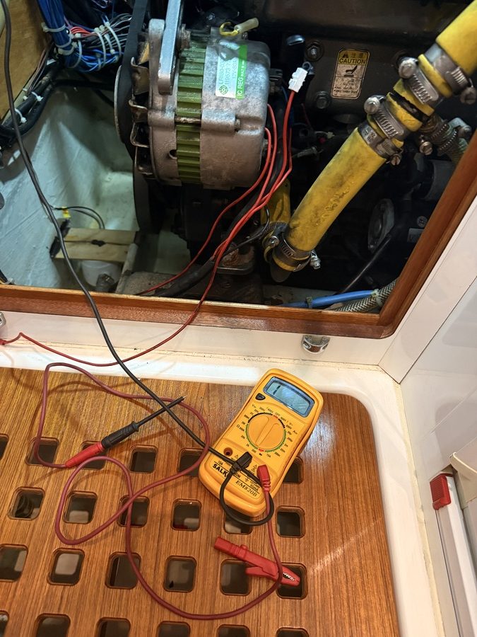 Solange wir ausreichend Sonnenstunden haben, sind unsere Batterien eigentlich jeden Nachmittag bei 100%. An Tagen wie heute fällt der Energiepegel dann sukzessive. Nach spätestens drei bis vier Tagen wird es eng und dann wäre es schön, wenn man mit ein bis zwei Motorstunden den Verbrauch eines Tages wieder auffüllen könnte. Das funktioniert aber leider nicht. Der Motor schafft in einer Stunde nur ca. 2% zusätzlicher Batterieladung. Werner versucht herauszufinden, woran das liegt. Dazu muss er erstmal das System der verbauten Aggregate durchschauen. Wir haben eine Lichtmaschine, die 80 Ah Leistung liefern kann. Zu dieser gehört ein Ladebooster, der dafür sorgt, dass die Verbraucherbatterien, die Starterbatterie und die Batteriebank für die Ankerwinsch je nach Bedarf geladen werden. Das war die Grundausstattung des Bootes. Unser Voreigner hat dann eine Solaranlage angebracht und in einem zweiten Schritt erweitert. Diese ist ebenfalls mit verschiedenen Reglern an die Batteriebank angeschlossen. Neben einem nicht angeschlossenen Kabel an der Lichtmaschine, von dem nicht klar ist, was es soll, findet er eine durchgeschmorte Sicherung, liest stundenlang im Internet zu den verbauten Aggregaten und diskutiert via Facetime mit den Söhnen, die Solarerfahrung aus dem WoMo-Ausbau mitbringen. Am liebsten wäre ihm, das ganze System neu aufzubauen und die intelligentesten Aggregate einzusetzen, die der Markt hergibt. Aber das ist natürlich kein Projekt für den Ankerplatz und bedarf ausgiebiger Vorbereitung. Ihr werdet hier lesen, wenn es soweit ist!