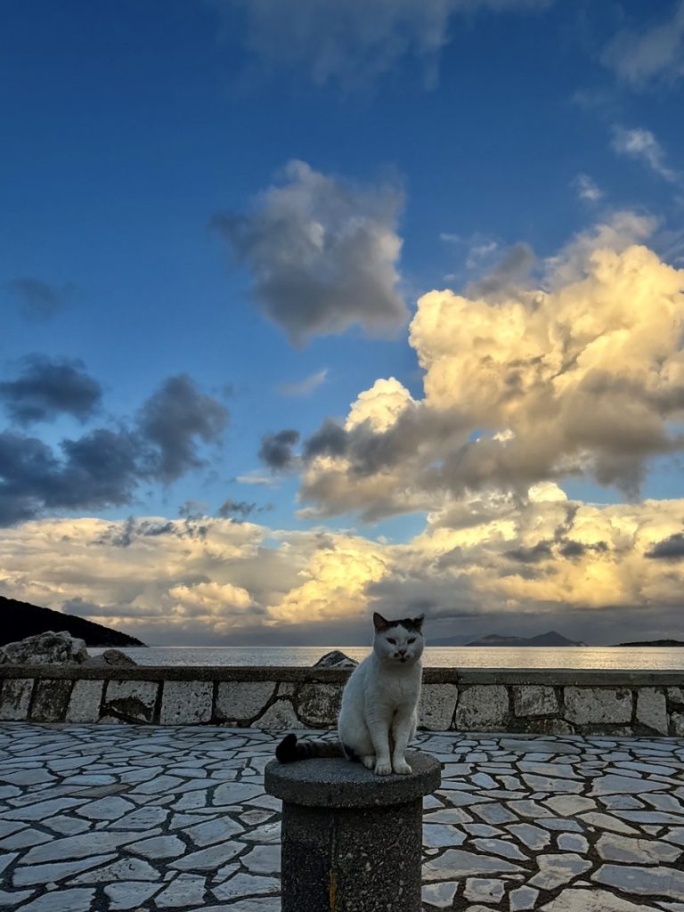 Es ist Mitte November, die herbstliche Jahreszeit ist nun auch in Griechenland zu spüren und nicht zu übersehen! Die Tautropfen auf dem Salbei, die leichten Nebelfelder auf dem Meer in der Morgenstimmung beim Kaffee, die, wie ausgestorben wirkenden Orte und verlassenen Häfen, die Wind- und Wetterkapriolen spiegeln die Atmosphäre wieder. Eine zum Wohlfühlen, keine Touristenmassen, Ruhe in der Natur und in den Städten, purer Genuss beim Baden auch ohne Badezeug und Zeit miteinander aktiv zu bleiben, -die Welt dreht sich weiter, steht nicht still- wir( ihr) leben so, wie es uns gefällt! Das gefällt mir sehr und ich kann miterleben ( während des Lesens), wie gut es tut! Weiter so!!!