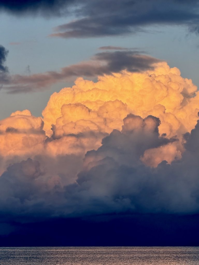 Im kleinen Hafen liegen nur ein paar Fischerboote. Wir gehen längsseits der Pier an die Mole. Etwas Schwell findet zwar den Weg in den Hafen, aber es ist aushaltbar. Wir brechen umgehend zu einem kleinen Ortsrundgang auf. Der kleine Ort wirkt wie ausgestorben – alle Fenmsterläden geschlossen! Aber dann sehen ein doch noch ein paar Menschen und geparkte Autos. Es scheint also Dauereinwohner zu geben. Aber alle Tavernen, Minimarkt, Bäckerei und Eisdiele sind seit zwei Wochen geschlossen. Wir machen einen Abstecher zur Windmühle oberhalb des Hafens und fangen ein paar hübsche Fotomotive ein. Die untergehende Sonne illuminiert die abziehende Wolkenfront im Osten auf beeindruckende Weise. Nach der Rückkehr folgt der Kontrollblick auf den Batteriestand. 75% sind ok für gut eine Stunde unter Maschine und etwa eine Sonnenstunde. In den nächsten Tagen ist wieder mehr Sonne angekündigt. Da sollten die Batterien step by step wieder zu 100% geladen werden.