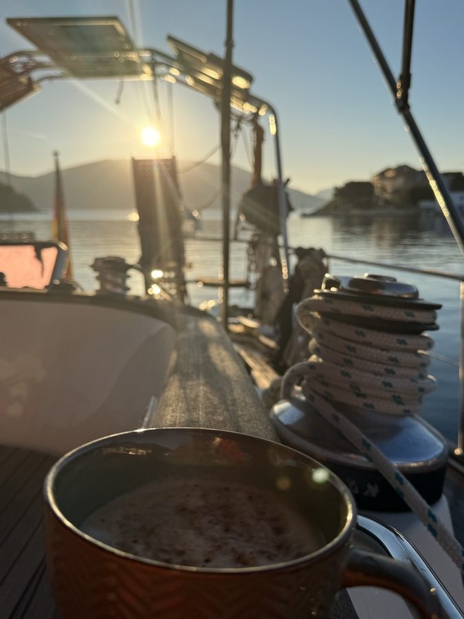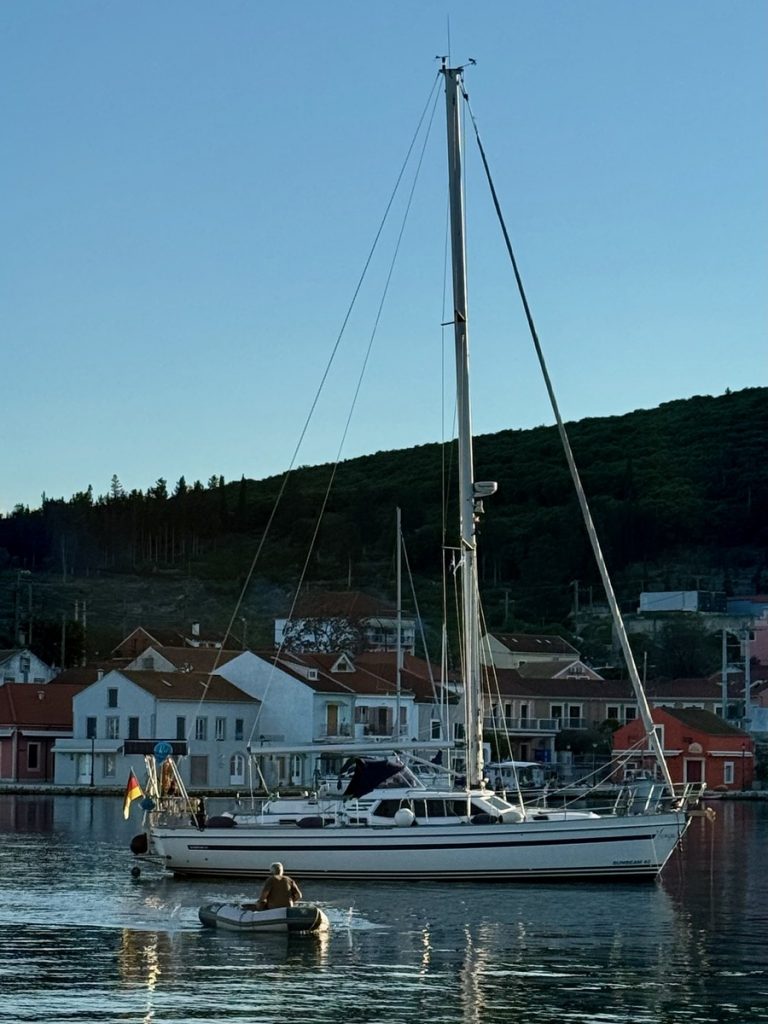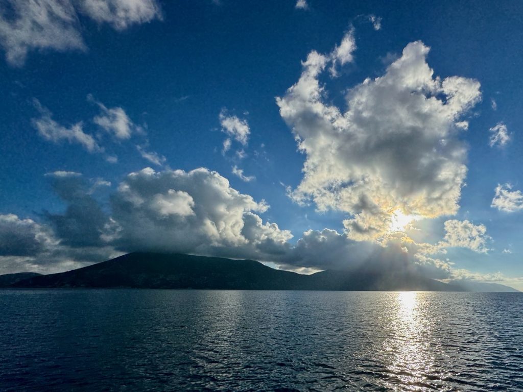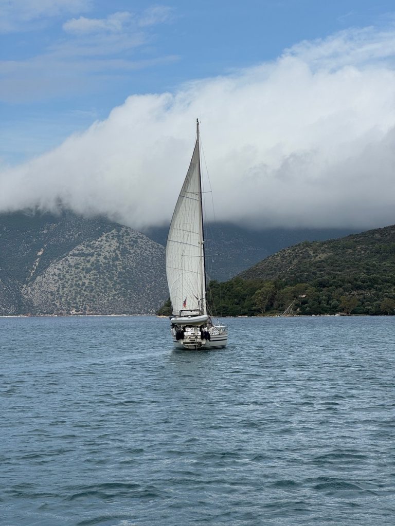 Das Wetter zwingt uns jedoch erneut zu einer Planänderung. Nach dem Durchzug der Front dreht der Wind auf Nordwest – sehr zum Bedauern der Skipperin, die sich auf ein paar Tage entlang der Westküste Kefalonias gefreut hatte. Bei dieser Windrichtung steht jedoch in jeder noch so schönen Ankerbucht der Mittelmeerschwell, sodass an ein entspanntes Liegen nicht zu denken ist.