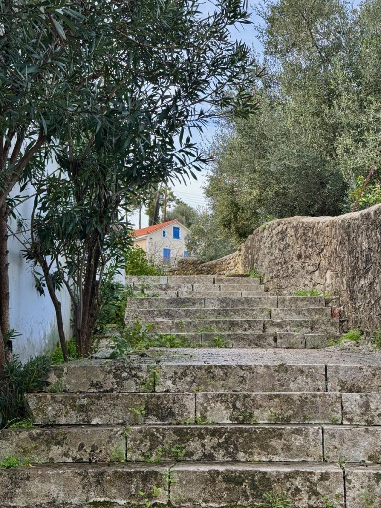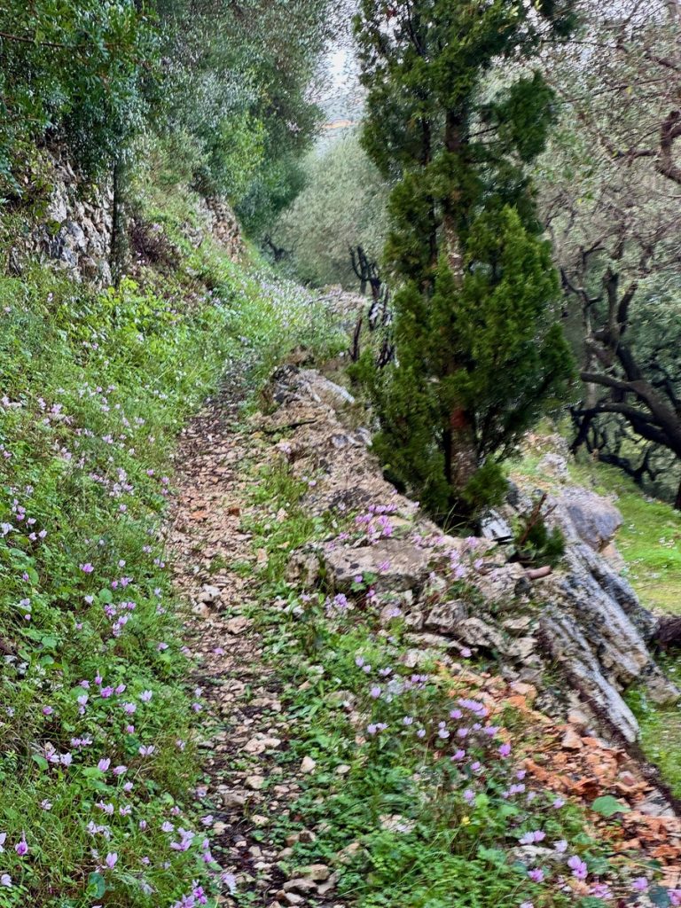 Natürlich ist das Café geschlossen. Es öffnet im Winter tatsächlich nur von 10-13:30 Uhr, also für die griechische „Kaffee- und Wassertradition“. Wir sind wegen des Wetters zu spät dran. Der Rückweg ist dann deutlich weniger spektakulär aber ebenfalls hübsch und führt über Nebenstraßen auf kürzestem Weg zurück zum Ausgangspunkt.