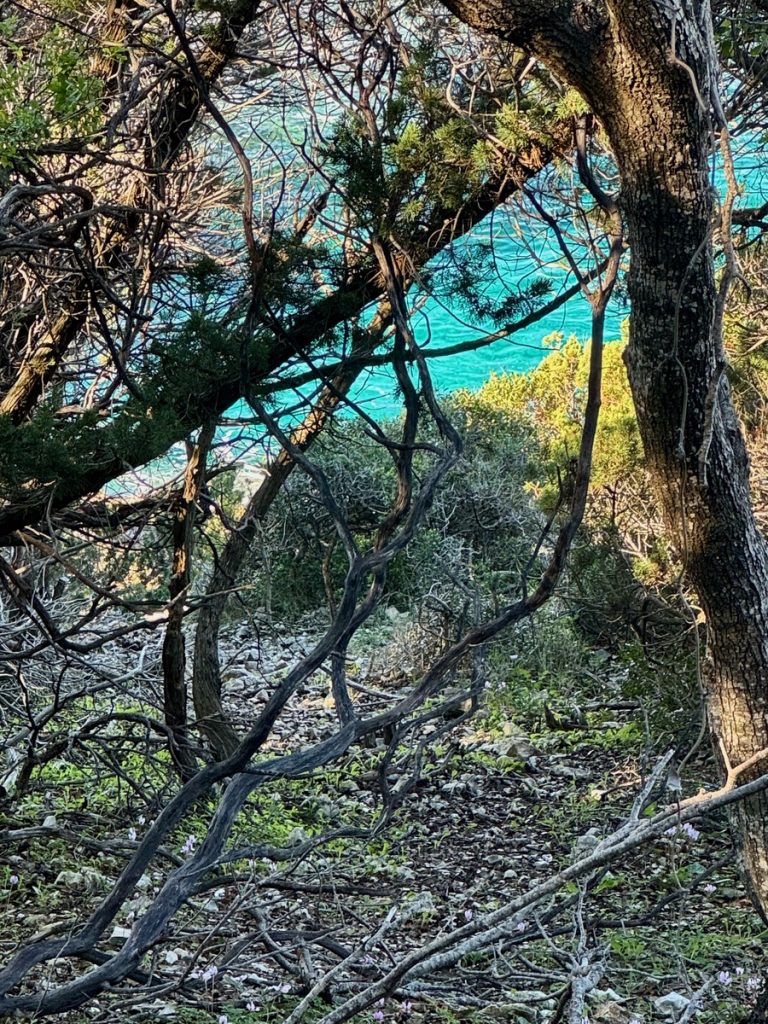 Im Rahmen des UNESCO Geoparks sind auf den Inseln Ithaka und Kefalonia auch verschiedene Wandertrails ausgeschildert worden. Hier in Fiskardo gibt es drei verschieden Rundwanderungen. Die kürzeste hat die Skipperin gestern Nachmittag noch absolviert. Für den heutigen Tag steht der „Battery-Trail“ zu einer deutschen Flagstellung aus dem 2. Weltkrieg auf dem Programm, den wir aber mit Hilfe von Komoot etwas modifiziert haben, um möglich viel an der Nordküste entlang wandern und so ggf. eine der Buchten zum Schwimmen nutzen zu können.