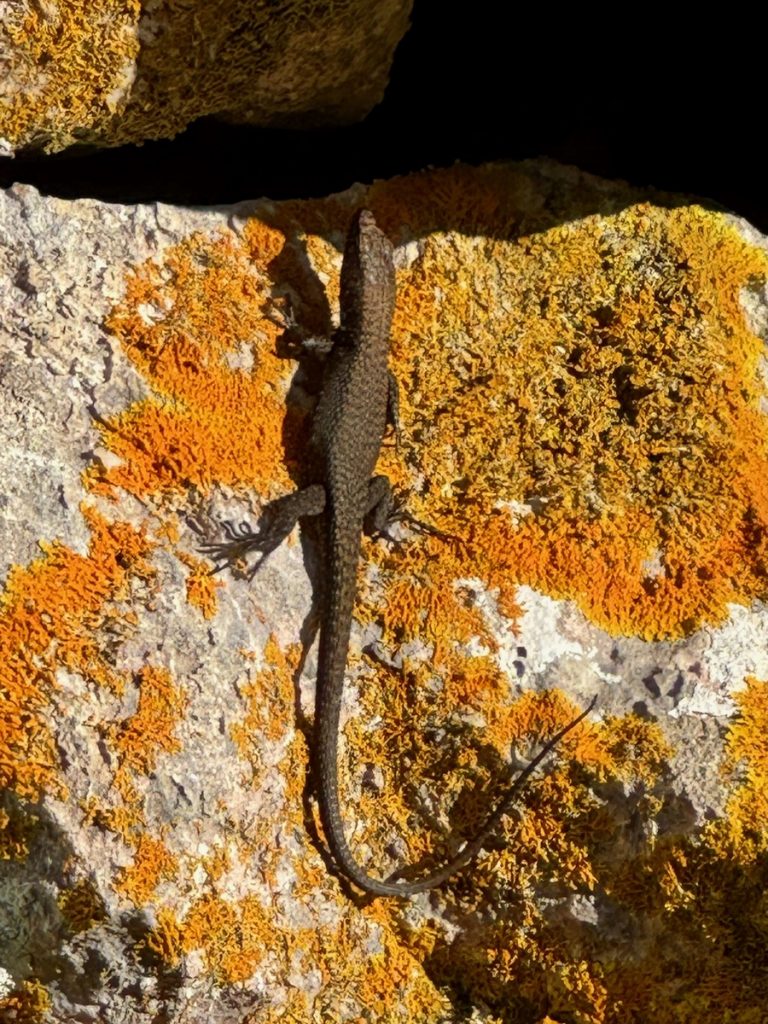Um 14:00 Uhr meldet sich Werners Handy mit einer Erinnerung: Gesellschafterversammlung! So ein Mist, wir haben uns im Tag vertan und dachten, die sei morgen. Zum Glück gibt es an dieser Stelle im Wald recht gute Netzabdeckung und Werner findet ein sonniges Plätzchen. So kann er an der digitalen Gesellschafterversammlung teilnehmen und wird diese sicherlich nie vergessen: im Wald auf einem Stein sitzend, leicht verschwitzt im T-Shirt. Die Skipperin erforscht erst die nähere Umgebung und beobachtet ein paar Eidechsen, bricht dann aber doch alleine auf, denn es dauert…