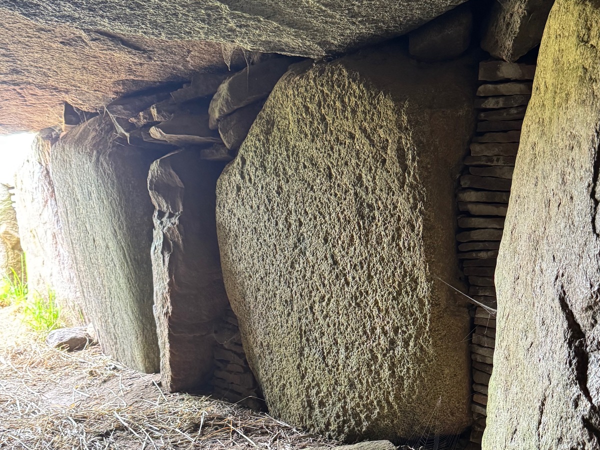 Im Anschluss nutzen wir das (noch) gute Wetter und fahren mit dem Bus nach Marstal, um von dort den südlichen Teil des Øhavsstien auf Ærø zu wandern. Auch dieser Teil führt überwiegend über Wege, die nur von Wanderern genutzt werden dürfen und außerdem vorbei an einigen Sehenswürdigkeiten und malerischen Gehöften. An vielen Stellen gibt es idyllische Picknickplätze mit wunderschönem Ausblick. Für jede Windrichtung findet sich ein geschütztes Plätzchen. Am Weg entdecken wir einen Shelterplatz für Wanderer und die „Jættestuen“, ein Hünengrab in das man sogar hineinkabbeln kann. An einer schon etwas altersschwachen, aber noch tragfähigen Picknickbank nehmen wir unser mitgebrachtes Picknick ein und versuchen die nervösen Hummeln zu fotografieren. Gar nicht so leicht! Leider erreicht uns ein angekündigter Schauer ungefähr auf der Hälfte des Weges und so kürzen wir den Abstecher ins Landesinnere ab und beeilen uns, Ærøskøbing zu erreichen.
