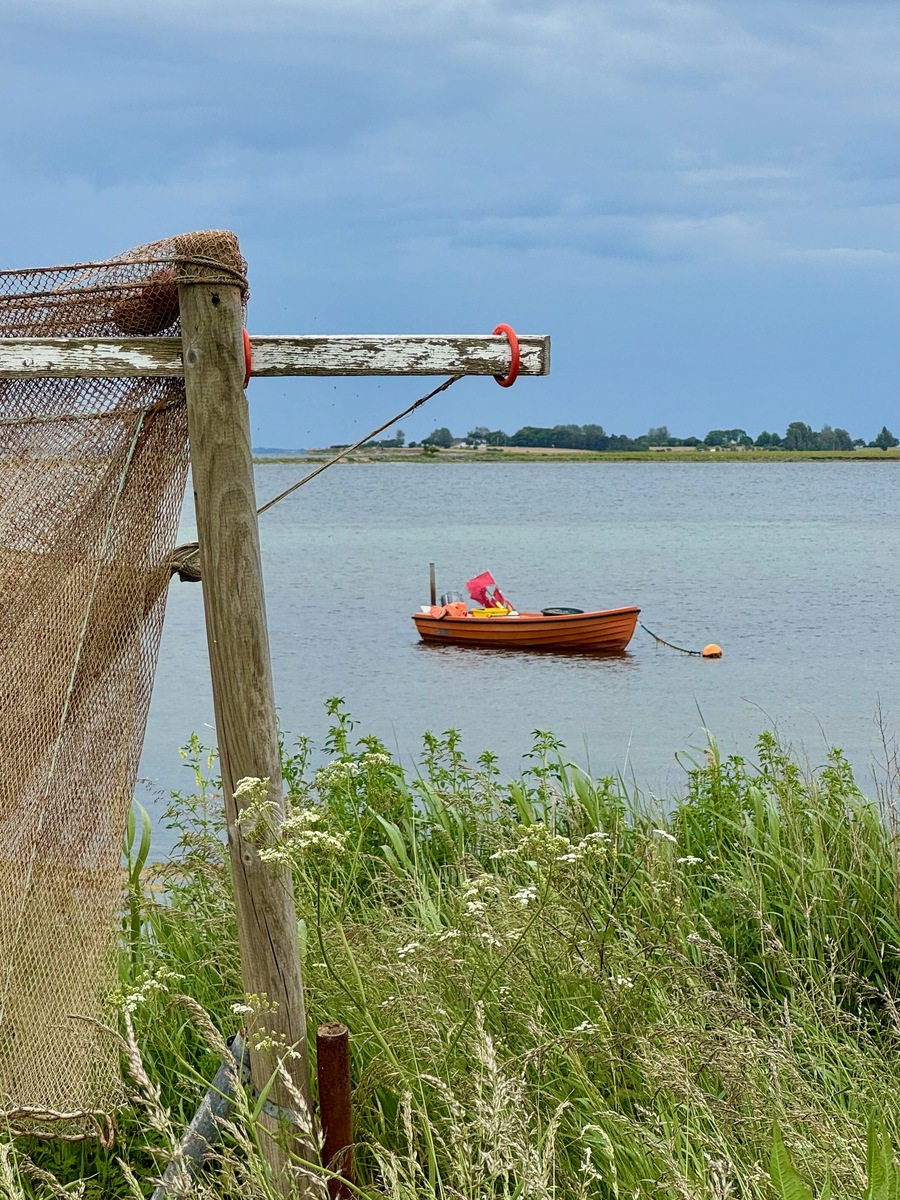 Der Morgen empfängt uns mit bedecktem Himmel. Viele Boote verlassen schon früh den Hafen, denn es sind Gewitterböen vorhergesagt, in die keiner gerne kommen möchte. Wir haben die Zeit, die Wetterstörung durchziehen zu lassen – welch ein Luxus! Gut eingepackt spazieren wir durch den Ort zum Brugsen Supermarkt, der in der Saison „alle dage“ geöffnet hat. Uns fehlt es an frischen Lebensmitteln, denn wir wollen die nächsten Tage keine Häfen, sondern Muringbojen ansteuern. Wir sind seit kurzem Mitglieder bei „Danske Tursejleren“, einem dänischen Verein, der zusammen mit dem dänischen Segelverband über 300 Muringbojen in den dänischen Gewässern ausgelegt hat. Die Bojen dürfen von den Mitgliedern für jeweils maximal 24 Stunden mit Booten mit einem Maximalgewicht von 15 Tonnen genutzt werden. Die Mitgliedschaft kostet 36 € im Jahr – also richtig günstig.
