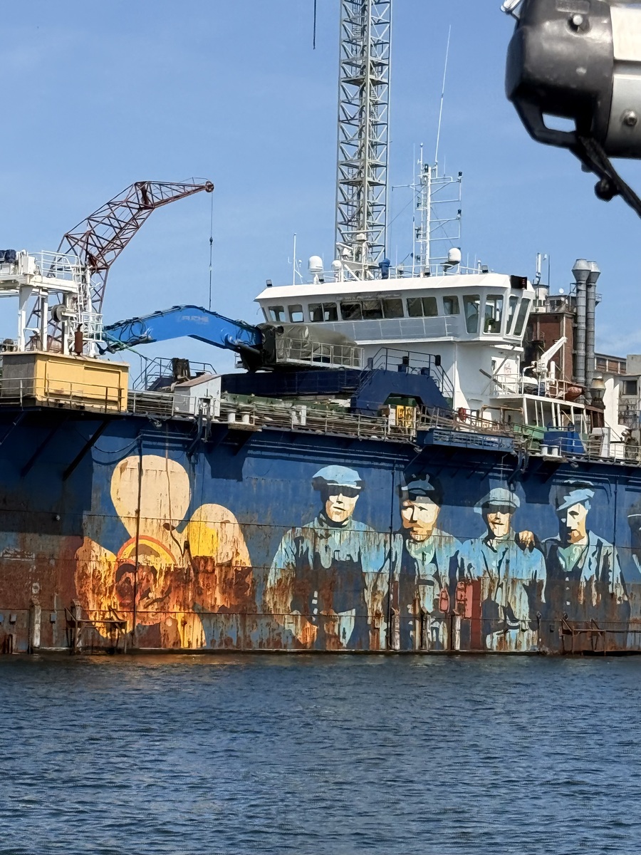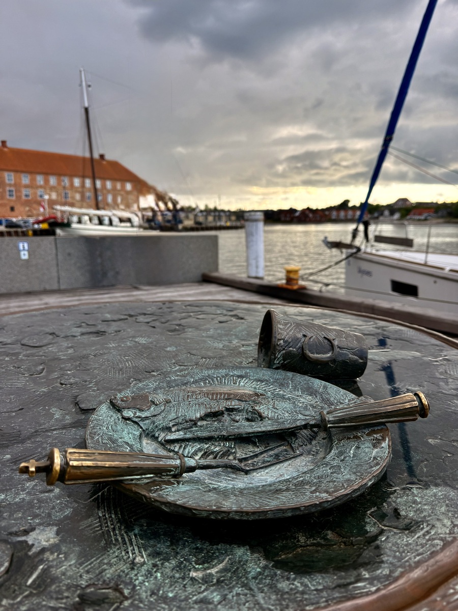 Wir kommen aus dem „Feiern“ nicht raus. Für heute haben wir uns mit der Crew der 7Seas, die wir in Monemvasia/Griechenland kennengelernt haben, in Svendborg verabredet. Niemals hätten wir damit gerechnet, uns ausgerechnet hier wiederzutreffen. Die Sonne scheint, der Wind weht aus südlichen Richtungen und beschert uns einen wundervollen Segeltag. Jento „fliegt“ zeitweise mit knapp 7 Knoten über Grund. Im Sund lässt der Wind nach, dafür setzt der Strom mit und wir werden von der hübschen „Helge“, einem Ausflugsdampfer überholt. In Svendborg werden ein paar Einkäufe erledigt und dann die Gäste an Bord begrüßt. Nach Kaffeetrinken im Cockpit, Spaziergang durch den Ort, Einlaufgetränk an der alten Werft und gemeinsamem Abendessen im Cockpit verabschieden wir uns nach 11 wundervollen gemeinsamen Stunden von unseren Gästen. Es war so schön mit euch – Danke Regina und Claus!